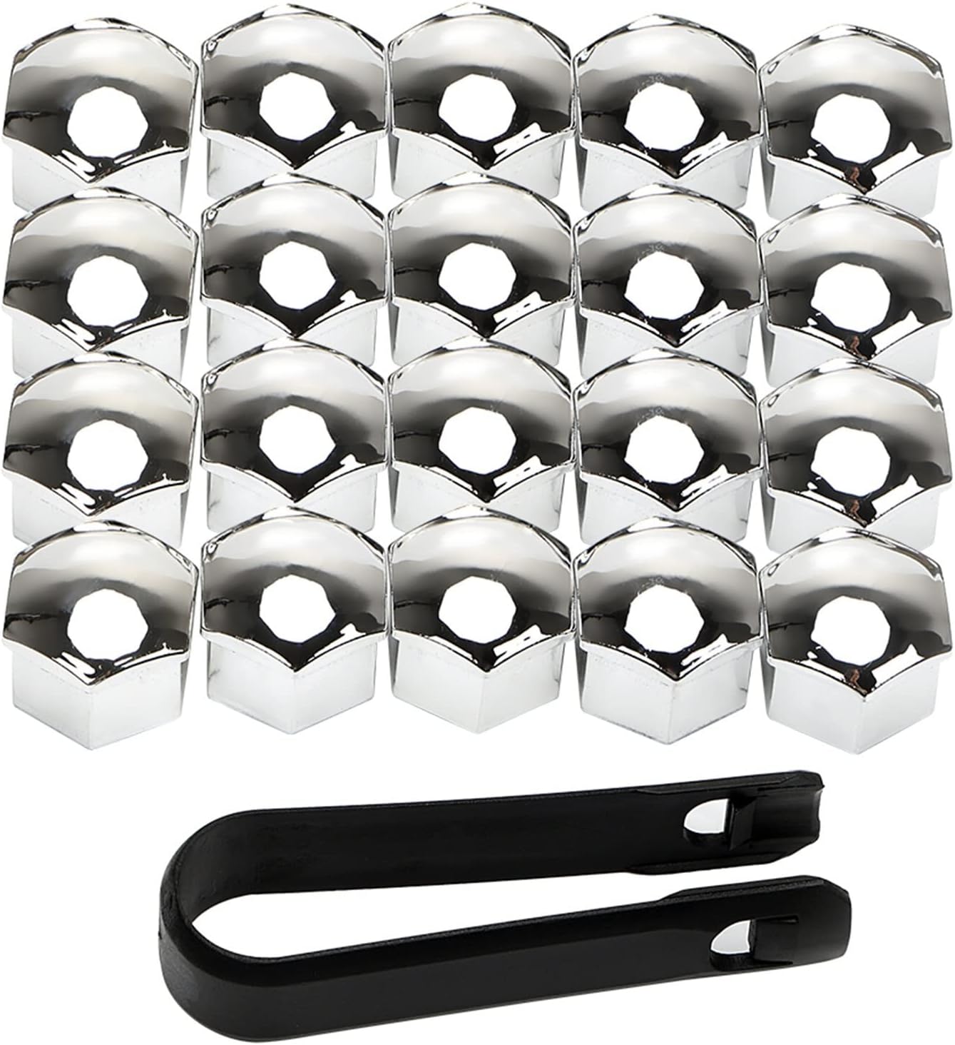 Jeu de 20 cache-écrous de roue avec outils inclus. Les couvre-goujons de roue offrent une apparence soignée et protègent les écrous des pneus de voiture des contraintes causées par la saleté, la pluie et l'usure.