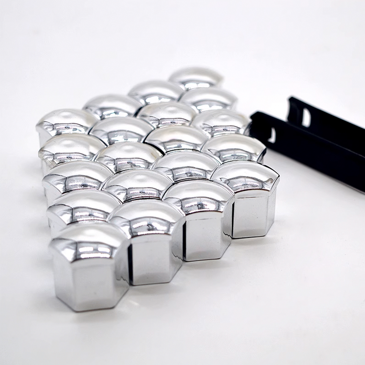 Cache-écrou de roue, paquet de 20 avec outil d'installation Silver 17 mm