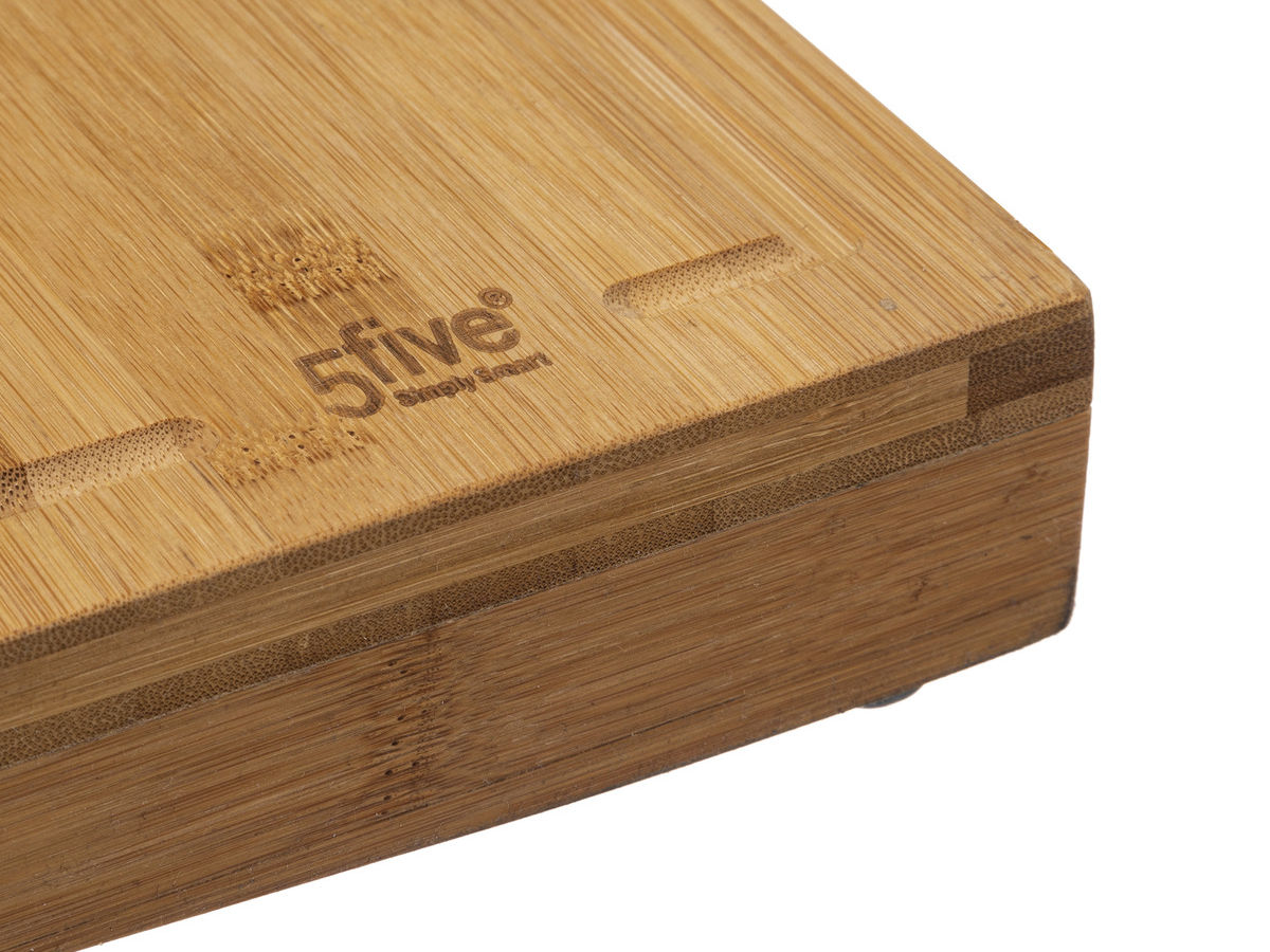 La marque 5Five® propose une large gamme de produits astucieusement pensés et designés pour tous les jours.Pour se simplifier la vie à la maison : à la cuisine ou dans la salle de bain, au garage ou à la cave, dans les placards...La marque d'objets intelligents qui améliorent le quotidien !•Dimensions : L.52 x P.58 x H. 4,3cm•Poids : 3.450 kg•Matière de la structure : Bambou•Garantie : 2 ans•Inclus : Rigole récupératrice de jusCouleur : NaturelDimensions (L x l x H) : 52 x 58 x 4,3 cmGarantie : 2 ansMarque : FIVEMatière(s) : BambouPoids : 3,45 kg