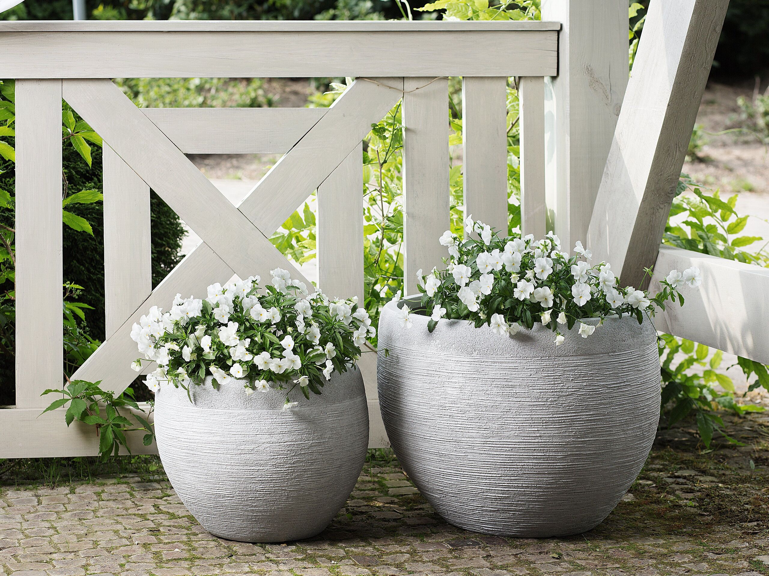 Pot pour plantes élégant. Une élégante jardinière en pierre blanche qui s'harmonise parfaitement avec votre espace de vie extérieur et intérieur. Placez-la dans votre jardin ou sur votre terrasse pour souligner l'aspect de votre composition. Le mélange de fibre d'argile et de fibre de verre les rend résistantes aux UV et à l'eau, ainsi qu'aux températures basses et élevées.