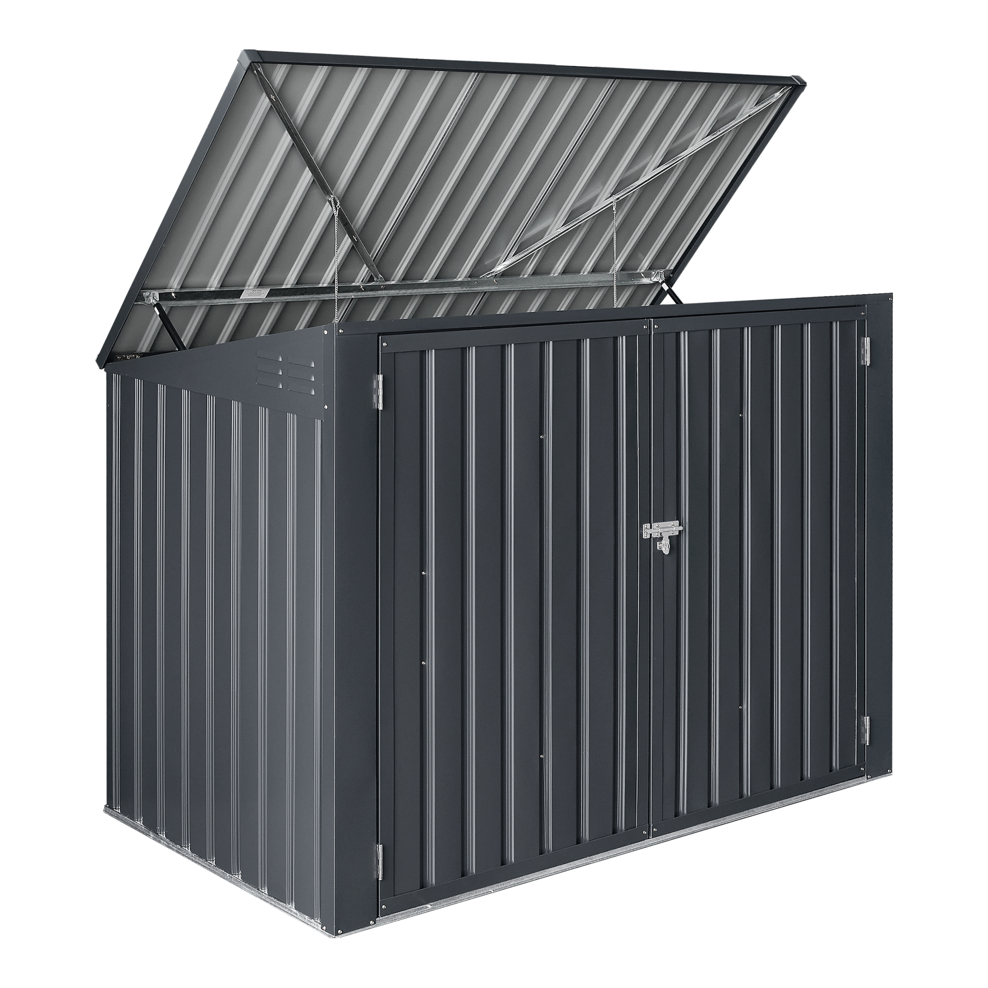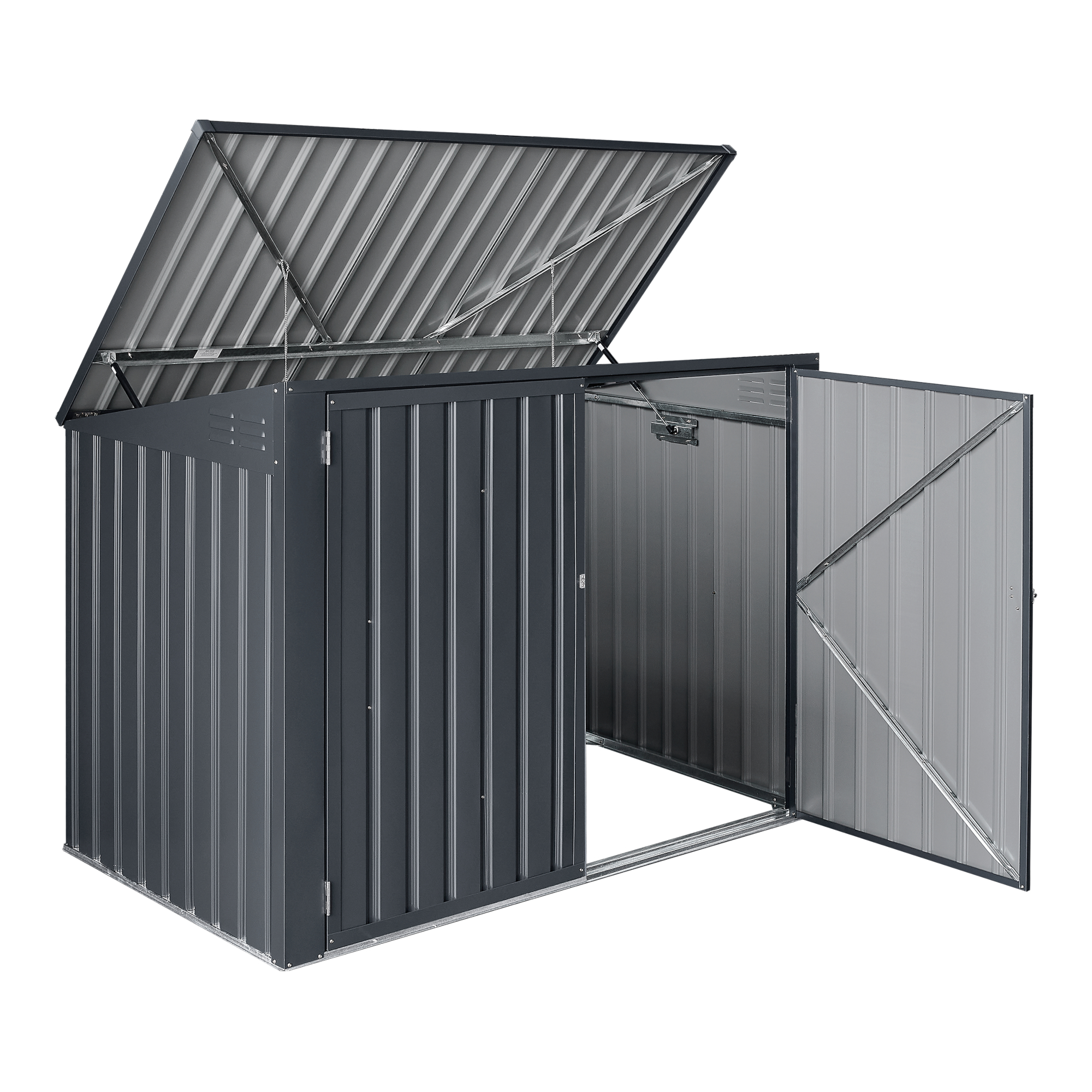 Cet abri poubelle résistant aux intempéries en acier galvanisé à chaud est une solution d'habillage discrète et esthétique à vos poubelles. C'est un espace de stockage polyvalent et verrouillable donc il peut sécuriser tout objet d'extérieur que vous souhaiter ranger ou cacher là-bas. Il est possible de fixer les couvercles au toit par des chaînes, donc pour accéder aux poubelles, il suffira d'ouvrir la toiture de l'abri.