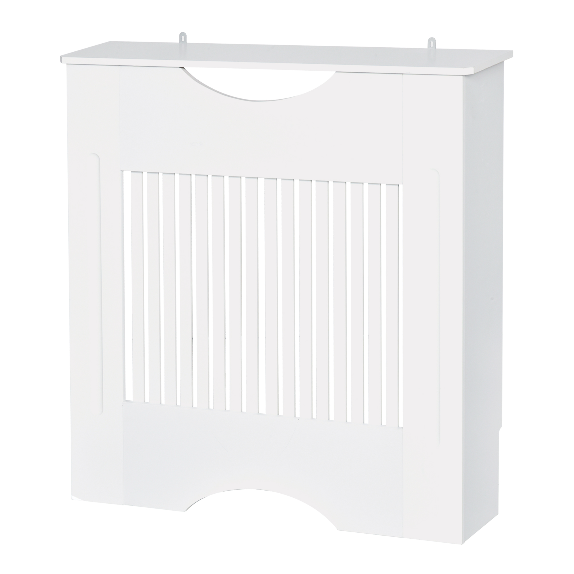Ce superbe cache-radiateur 78 x 19 x 82 cm blanc en MDF à lattes verticales blanc sublimera votre intérieur. Dispose d'une étagère supérieure pour afficher vos photos préférées ou objets de déco. il permet de transformer vos radiateurs disgracieux en quelque chose utile et esthétique, vous ne serez pas déçu !
