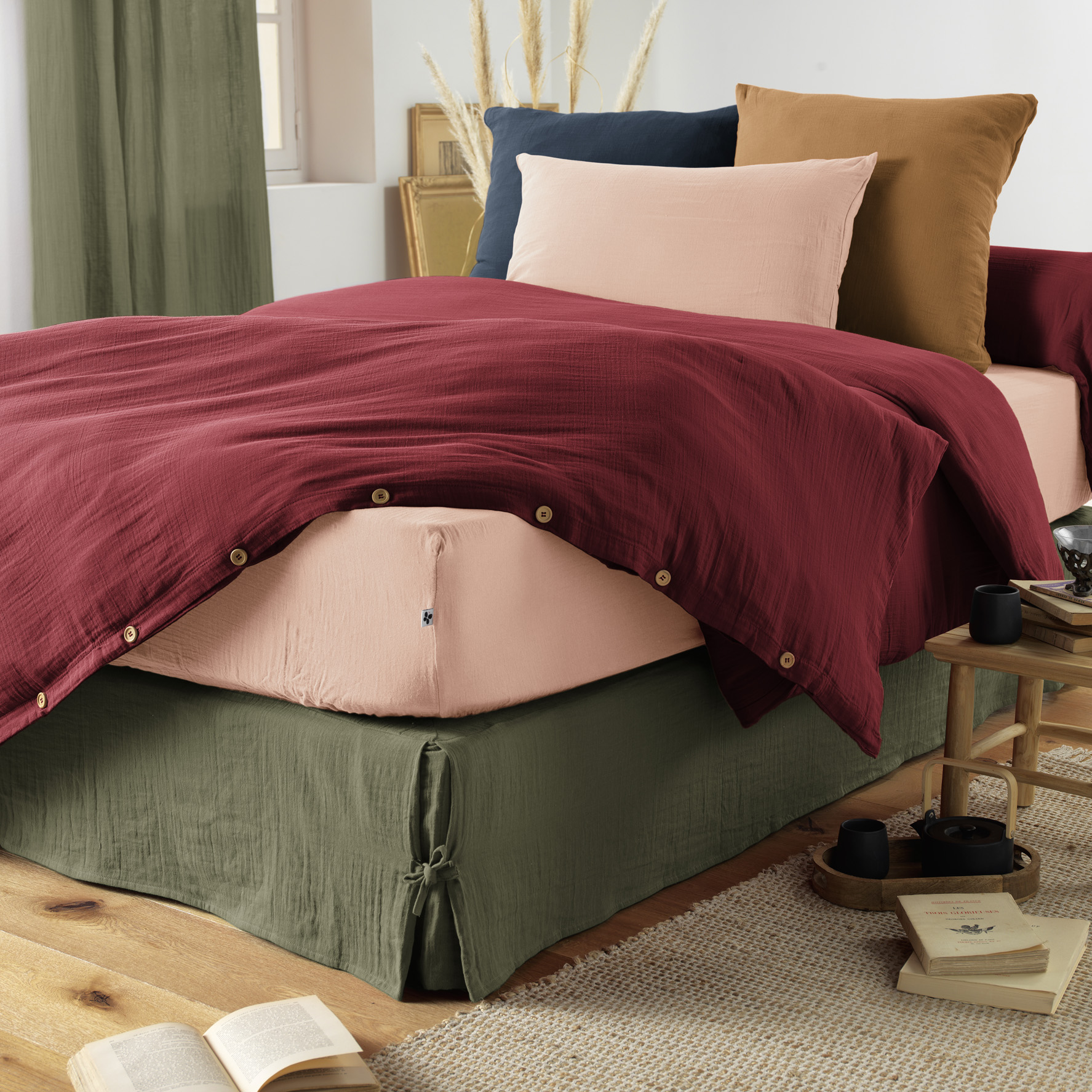 Entretien: Lavage à 40°, sèche linge possible. Naturellement gaufré, ce cache-sommier en gaze de coton ne nécessite pas de repassage.