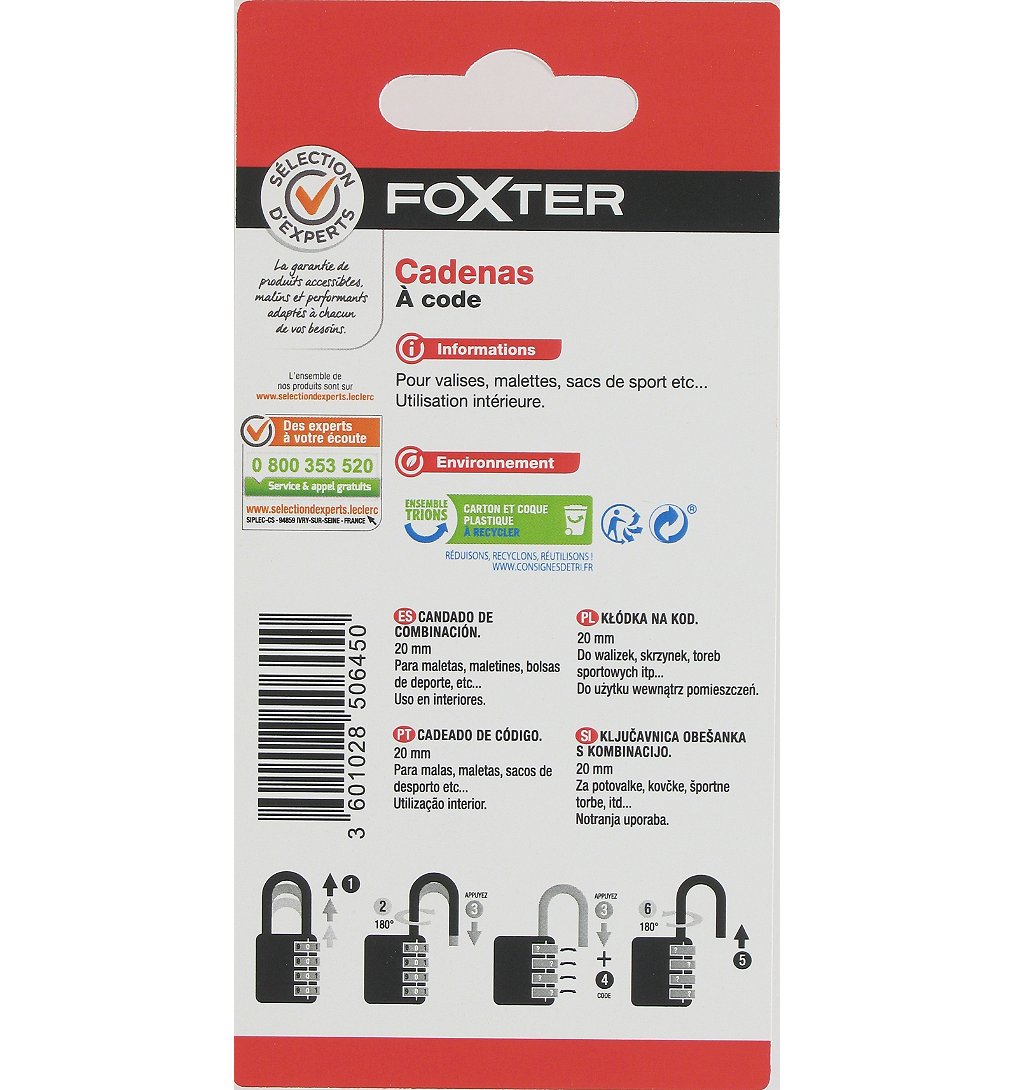 Cadenas à code 20mm - Sélection d'Experts - FOXTER
