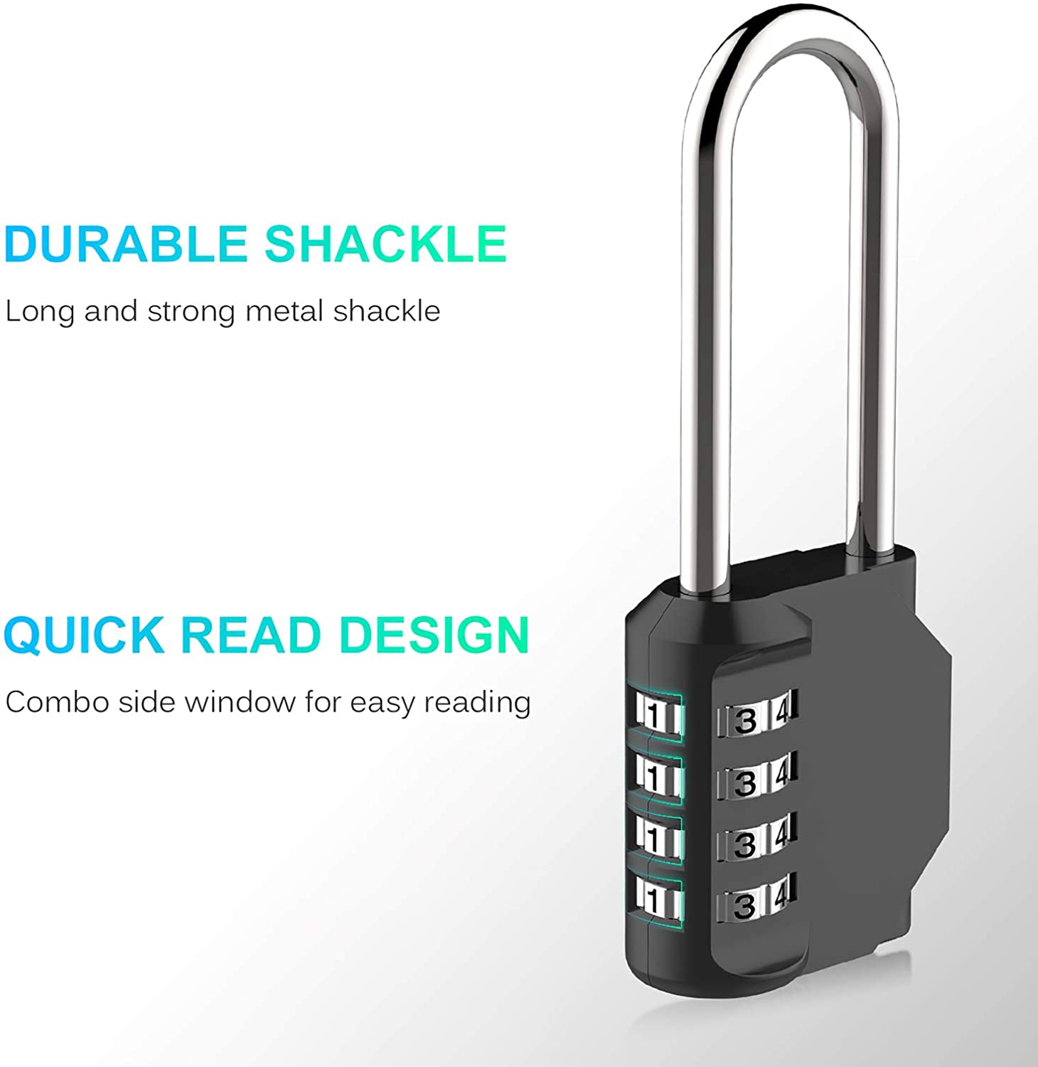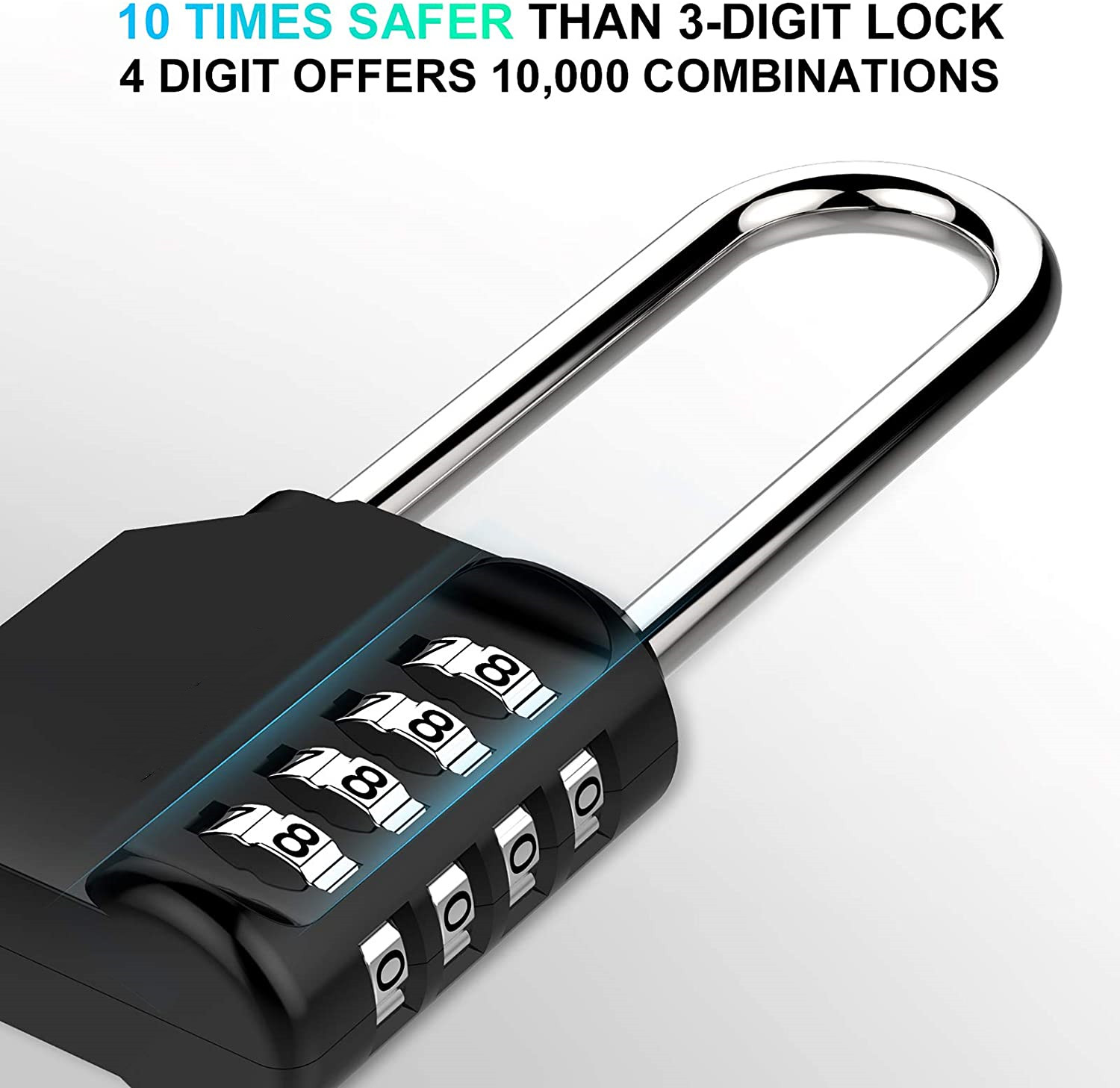 Serrure avec fenêtre latérale à lecture rapide et 4 chiffres qui offrent 10 000 options de combinaisons différentes pour une sécurité maximale. Convient pour les armoires, tiroirs, portails, etc.