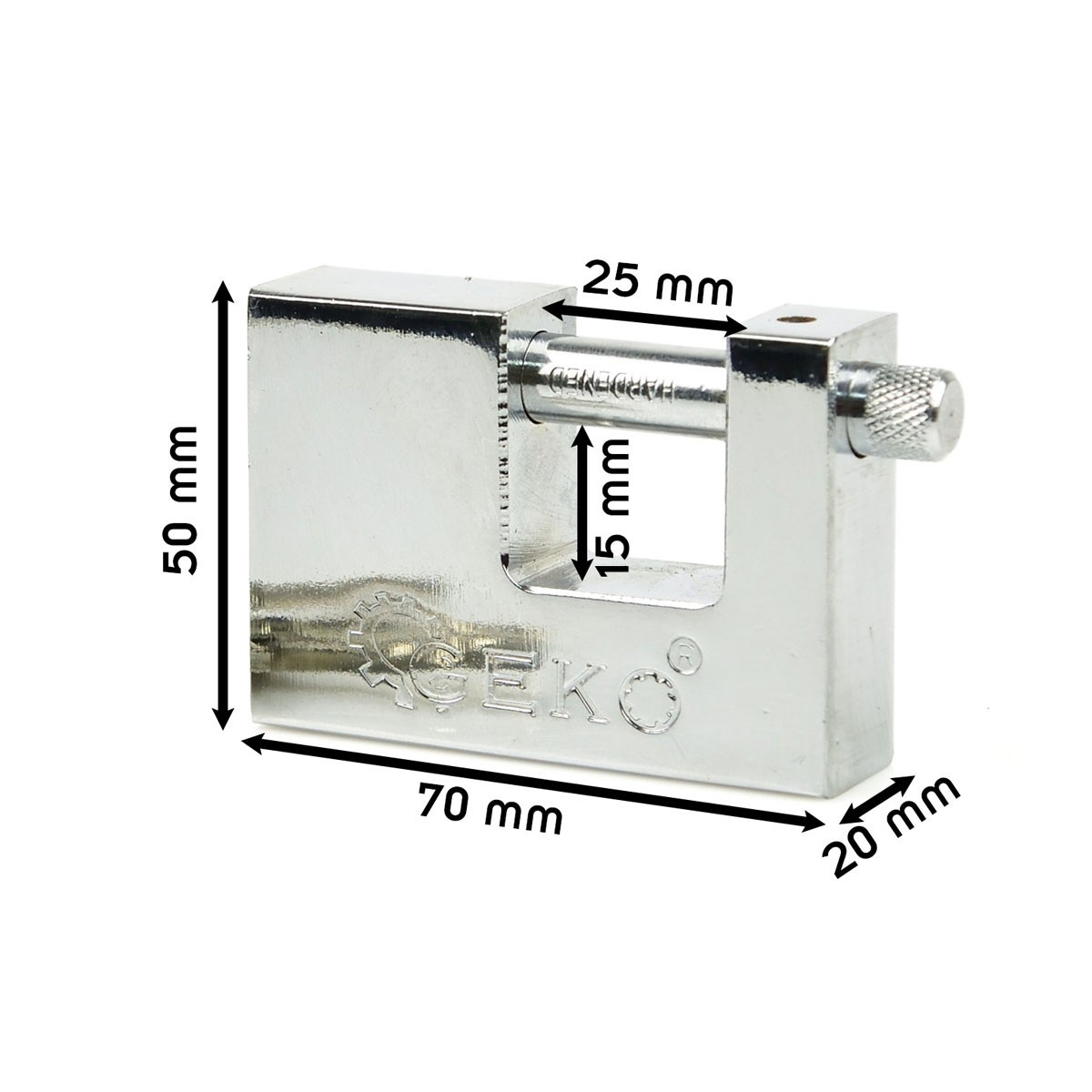 | Libellé | Cadenas rectangulaire avec 3 clés 70 mm |