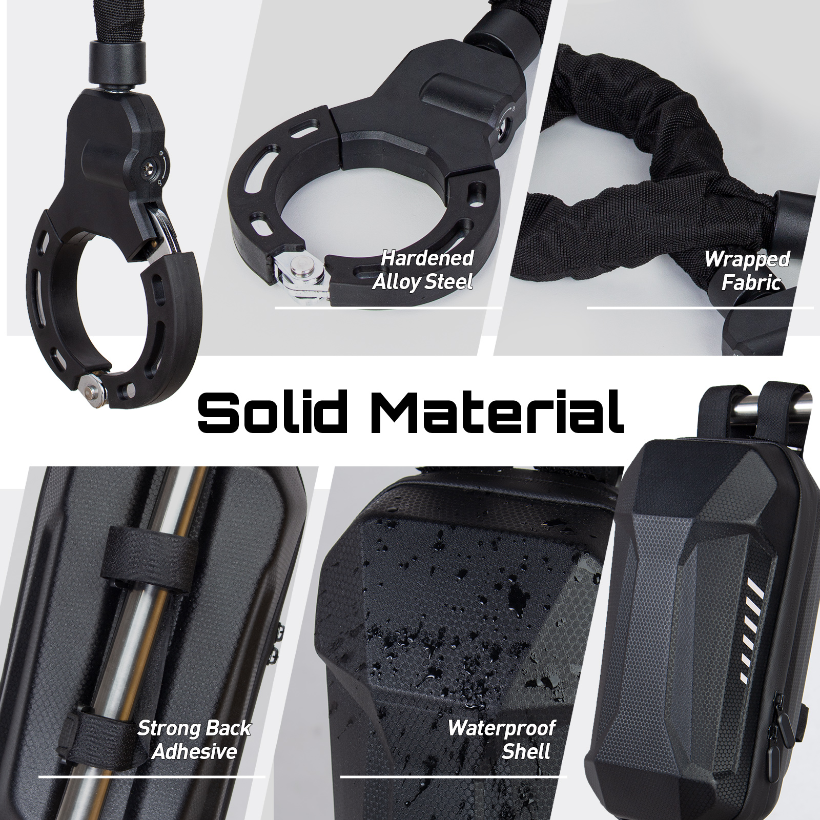 Matériau de haute dureté : fabriqué en alliage d'acier trempé solide, notre antivol trotinette electrique est conçu pour résister à la coupe, à la fracture et au sciage, garantissant ainsi la sécurité de votre vélo, scooter, poussette ou moto.