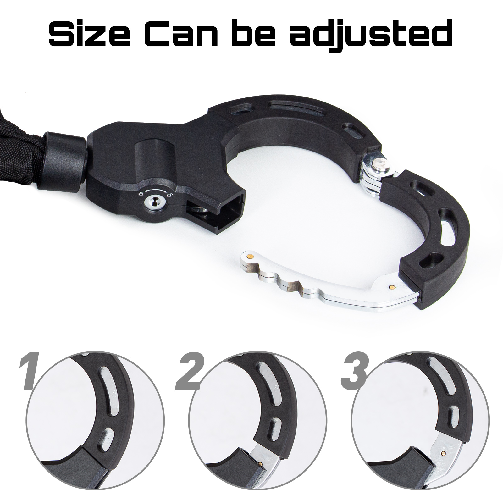 Taille de verrouillage réglable : notre cadenas trotinette electrique réglables est conçu pour s'adapter à des clôtures de différentes tailles (diamètres : 7,5 cm, 8 cm, 8,5 cm), ce qui le rend facile à attacher aux poteaux de clôture ou aux supports de vélo avec facilité et sécurité renforcée.