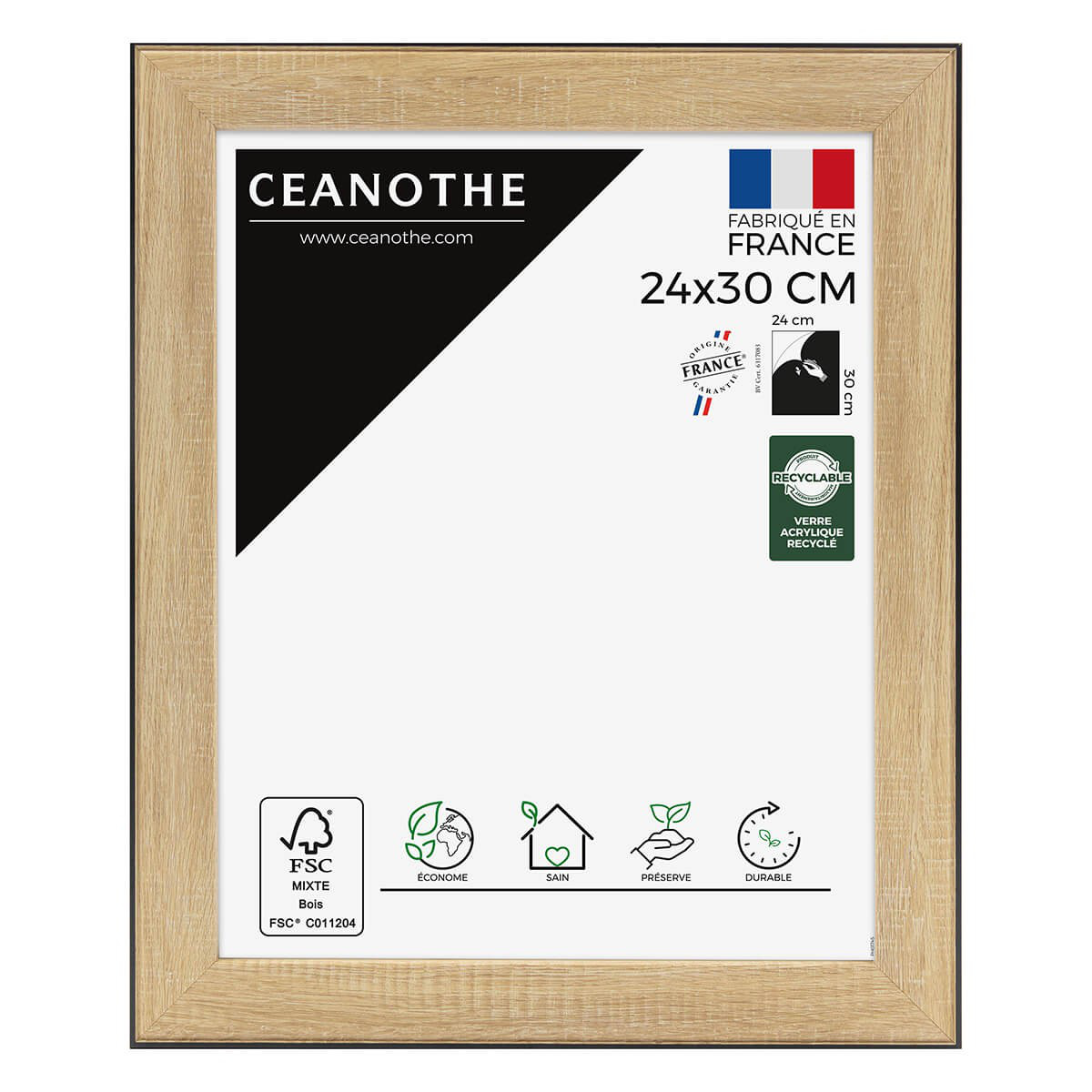 Baguette en résine recyclée à 80% et dos en bois fsc® de forêts gérées durablement verre acrylique recyclé à 70% léger et réciclable (film protecteur à retirer recto-verso) recyclable ce cadre dispose d'un système d'accroches au dos pour être fixé au mur. certifié origine france garantie
