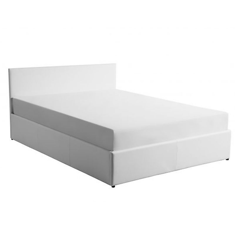 Cadre de lit EDGAR avec sommier relevable à lattes en simili - Blanc, Largeur - 160 cm