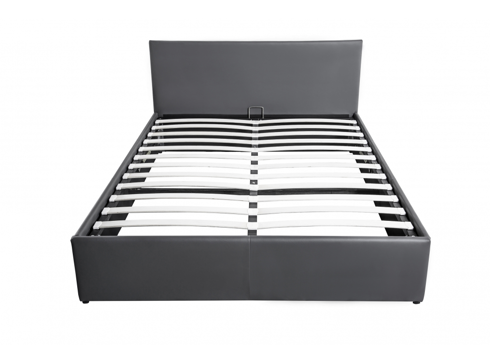 Cadre de lit EDGAR avec sommier relevable à lattes en simili - Gris, Largeur - 180 cm