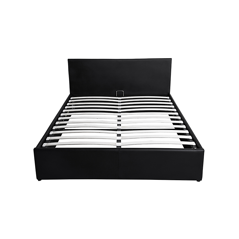 Cadre de lit EDGAR avec sommier relevable à lattes en simili - Noir, Largeur - 140 cm