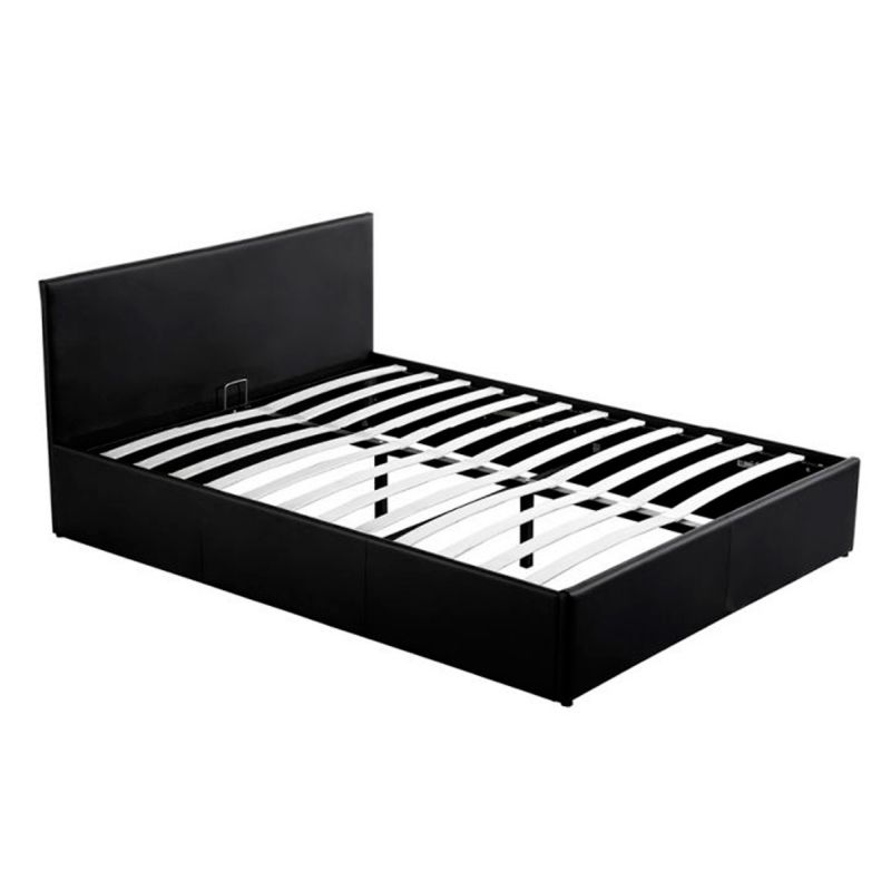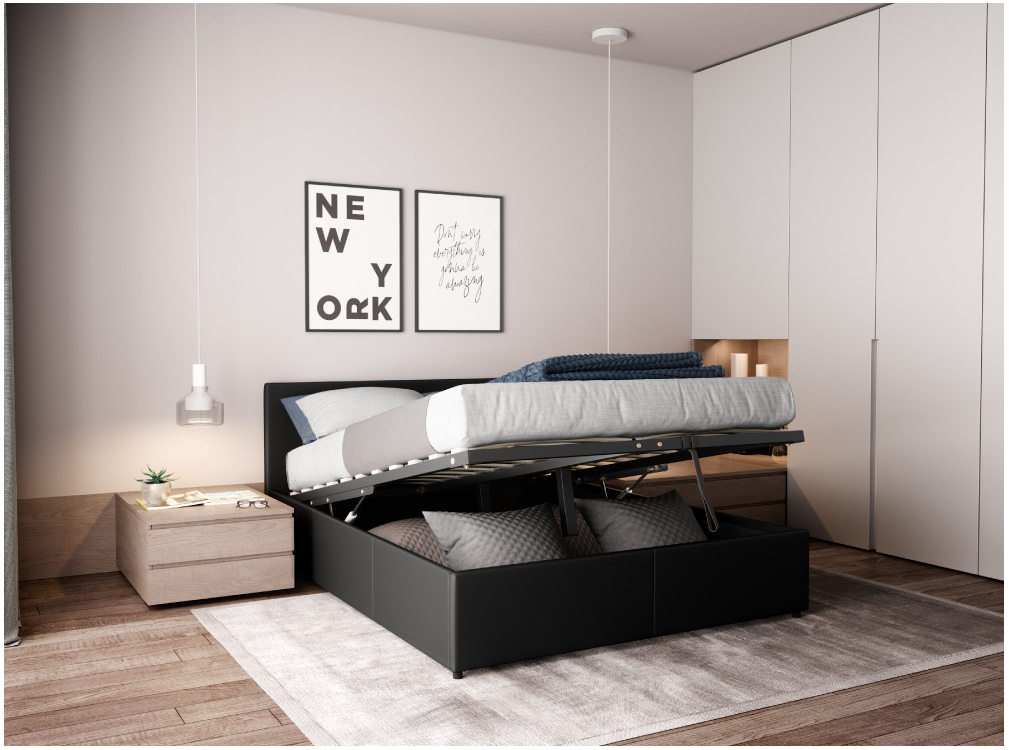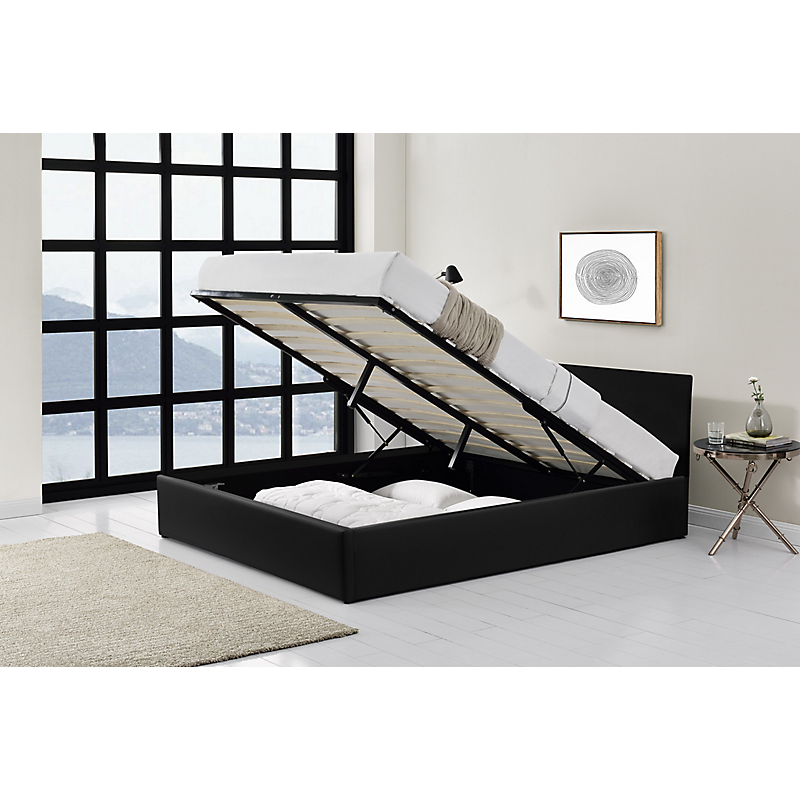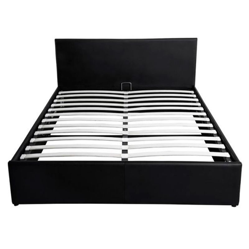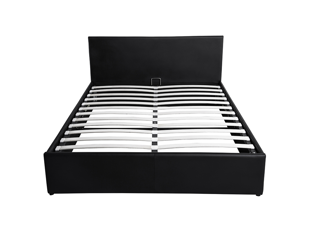 Cadre de lit EDGAR avec sommier relevable à lattes en simili - Noir, Largeur - 160 cm
