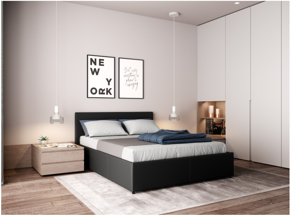 | Libellé | Cadre de lit EDGAR avec sommier relevable à lattes en simili - Noir, Largeur - 160 cm |