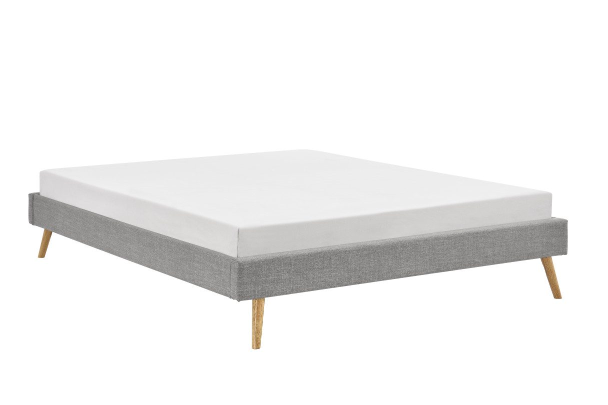 Cadre de lit LORA en tissu avec sommier à lattes - Gris clair, Largeur - 140 cm