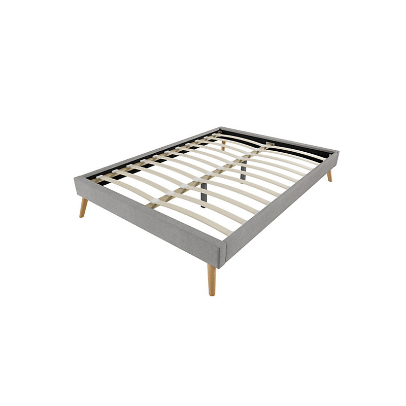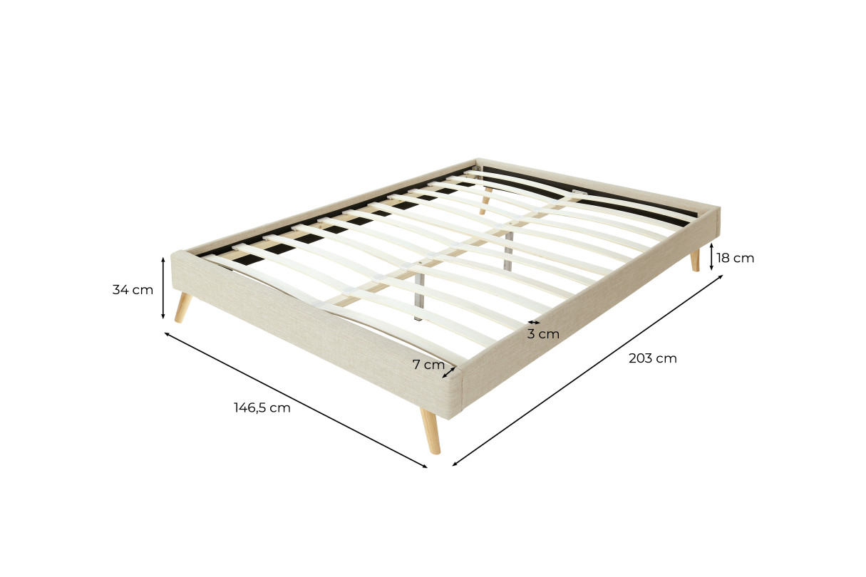 Disponible en 140 x 190 cm ou 160 x 200 cm pour deux personnes, ce cadre de lit scandinave est vendu avec son sommier à lattes. Le matelas n'est pas inclus. Livré non monté, ce lit est à assembler.