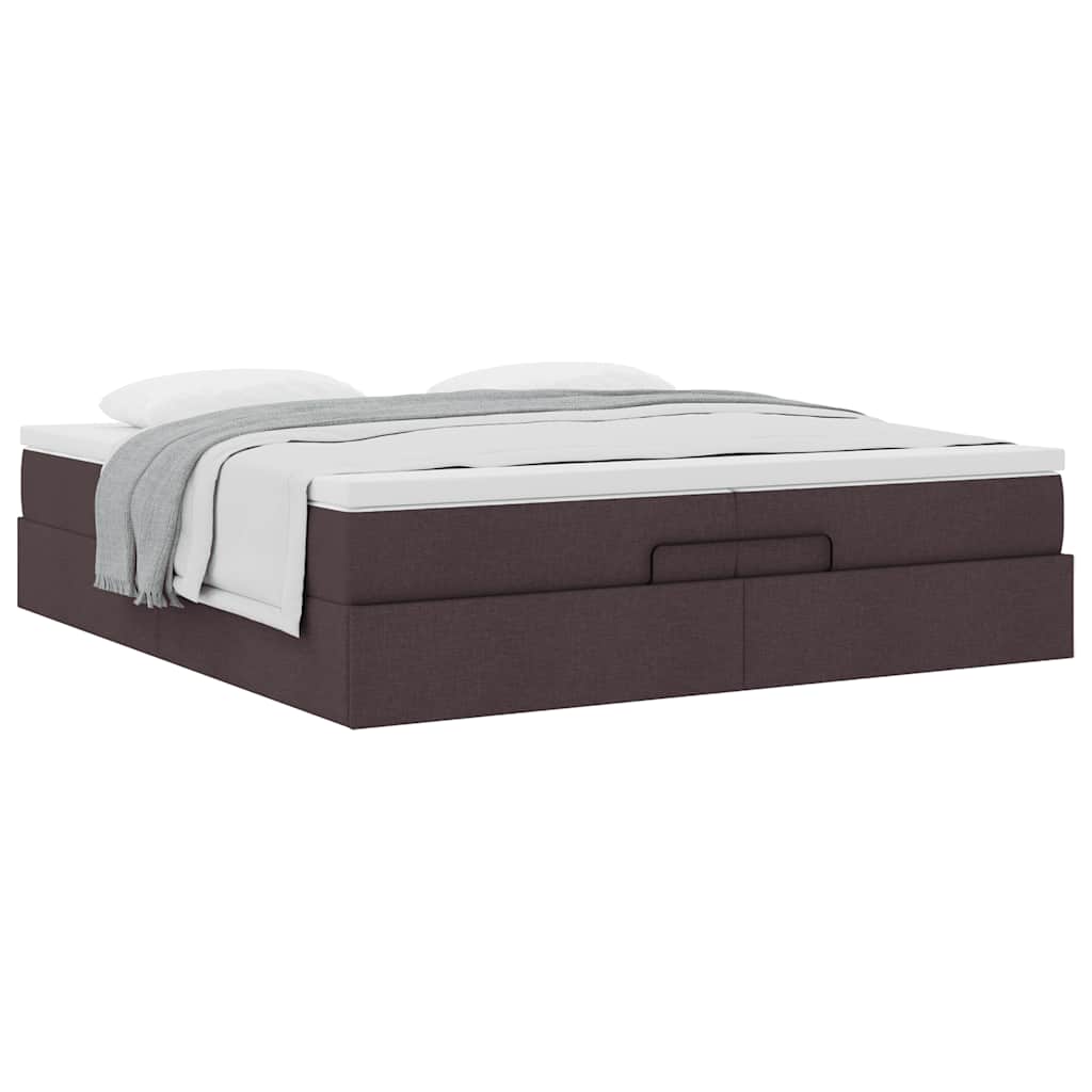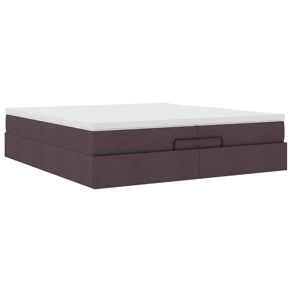 Cadre de lit ottoman avec matelas marron foncé 200x200 cm tissu