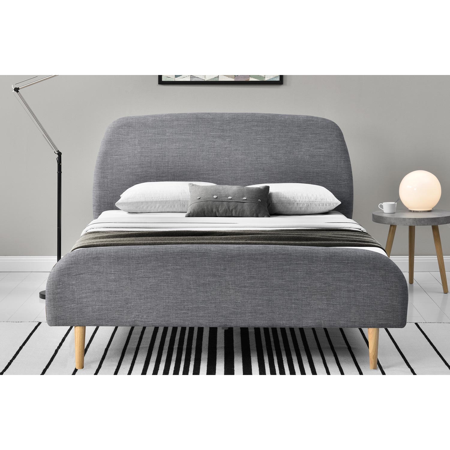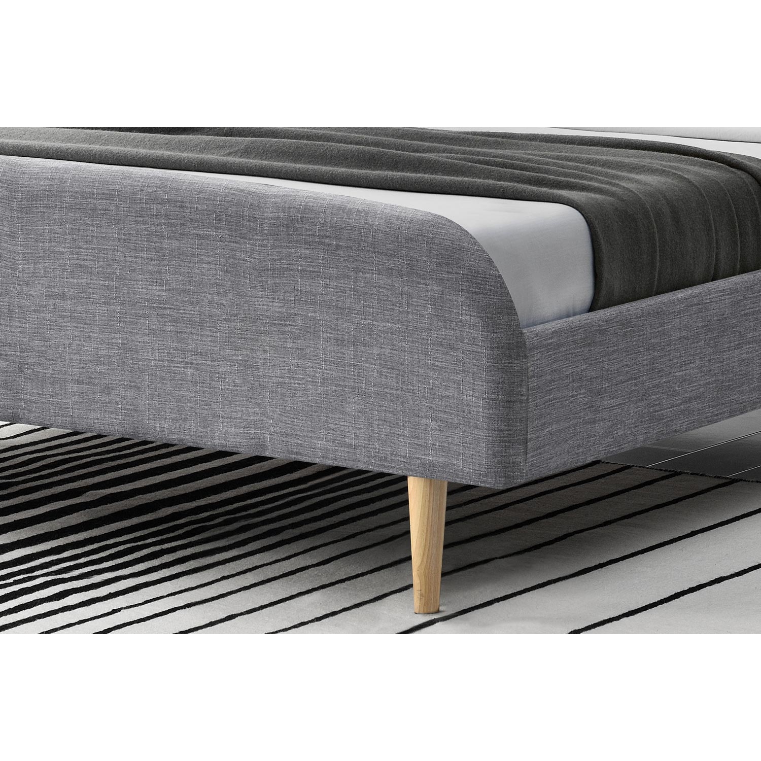 | Libellé | Cadre de lit scandinave en tissu gris clair avec pieds en bois 140x190 cm SANDVIK |
