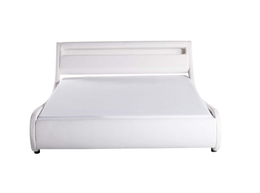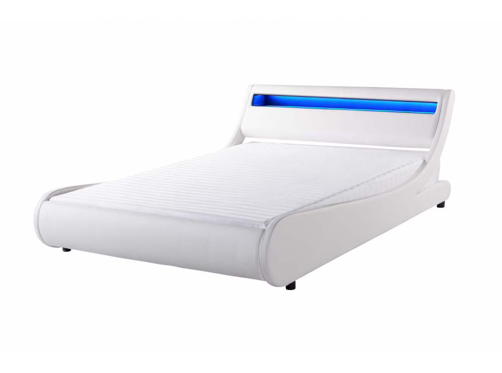 | Libellé | Cadre de lit TIM avec éclairage LED, tête de lit et sommier à lattes en simili - Blanc, Largeur - 160 cm |