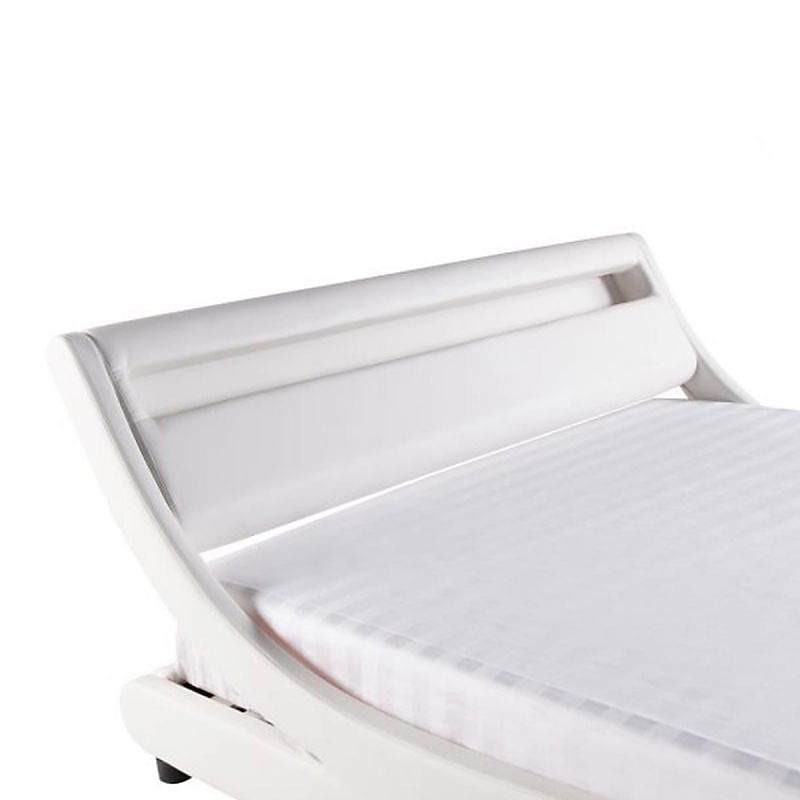 Cadre de lit TIM avec éclairage LED, tête de lit et sommier à lattes en simili - Blanc, Largeur - 160 cm