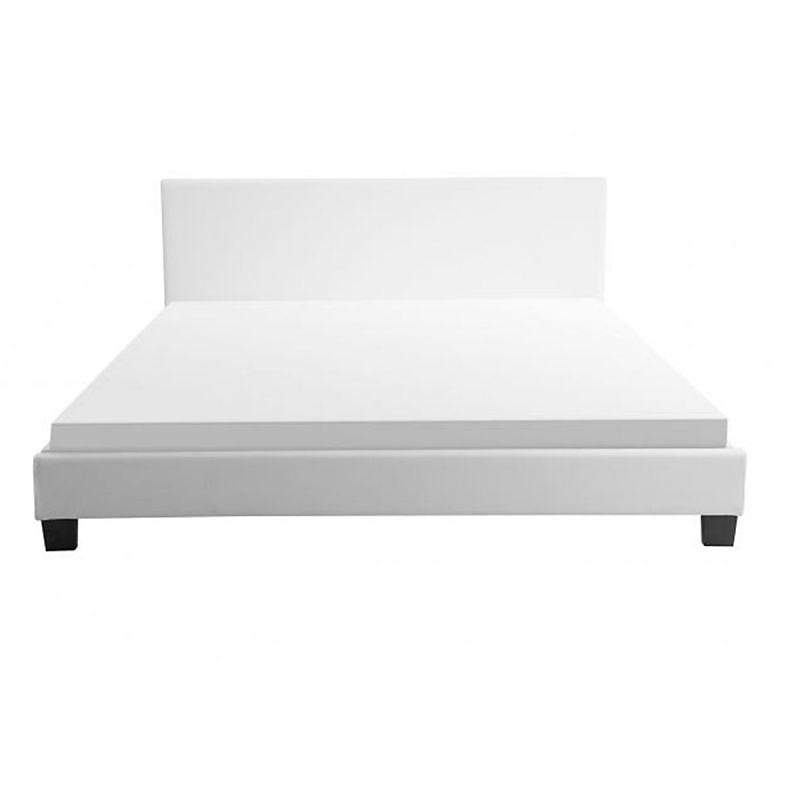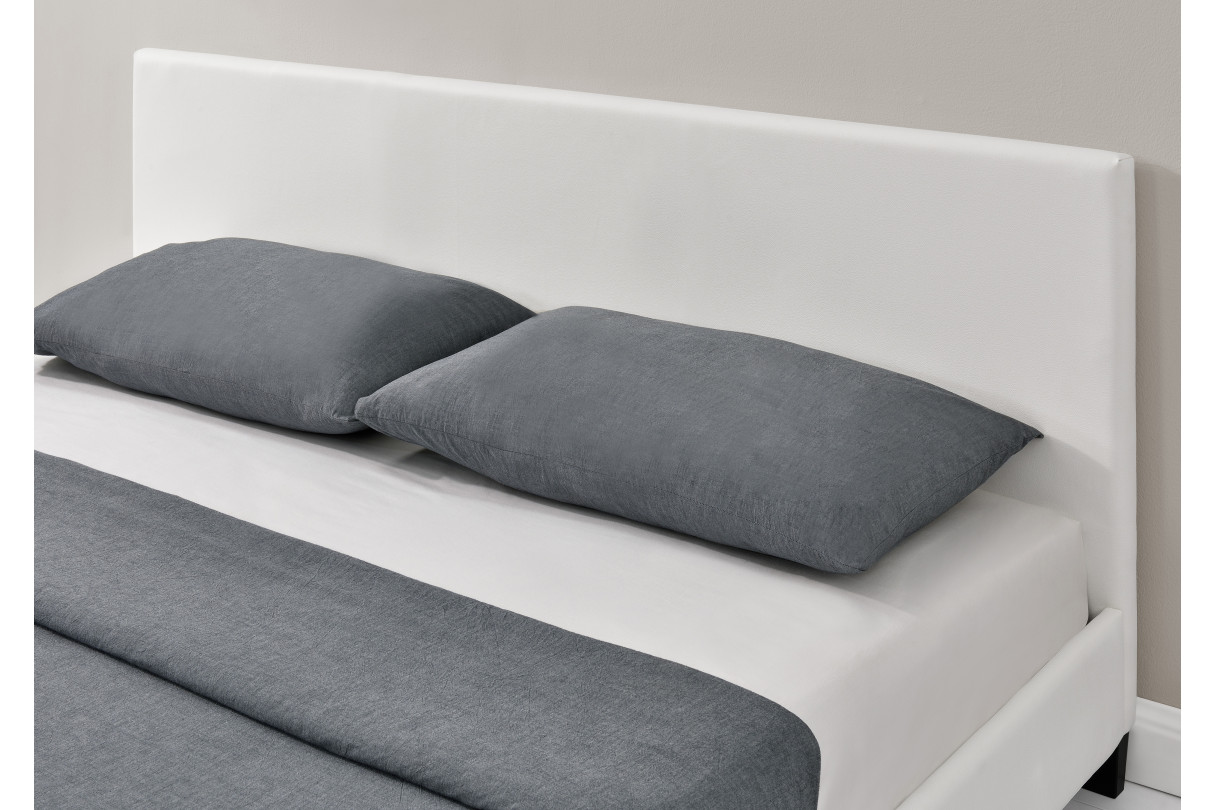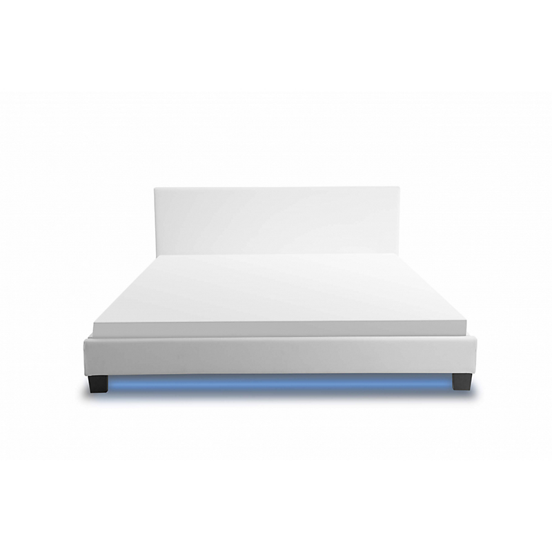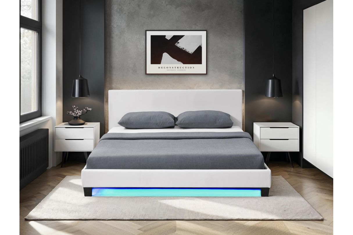 Libellé Cadre de lit YOKO avec éclairage LED, tête de lit et sommier à lattes en simili blanc - 140 cm