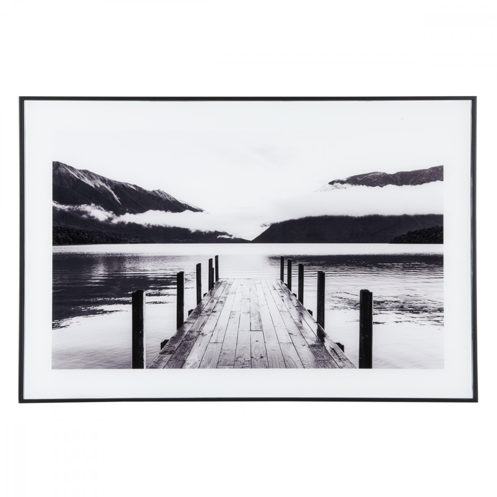 Évadez vous avec cette photo d'art de ponton donnant sur un lac de montagne. Transformez sans effort un espace vide sur votre mur en lui apportant majesté et élégance avec cette œuvre d'art et les autres pièces de la série d'art photographique comprenant aussi bien des animaux que de magnifiques paysages en noir et blanc. Dimensions : 40 x 60 x 2 cm Matière : Verre