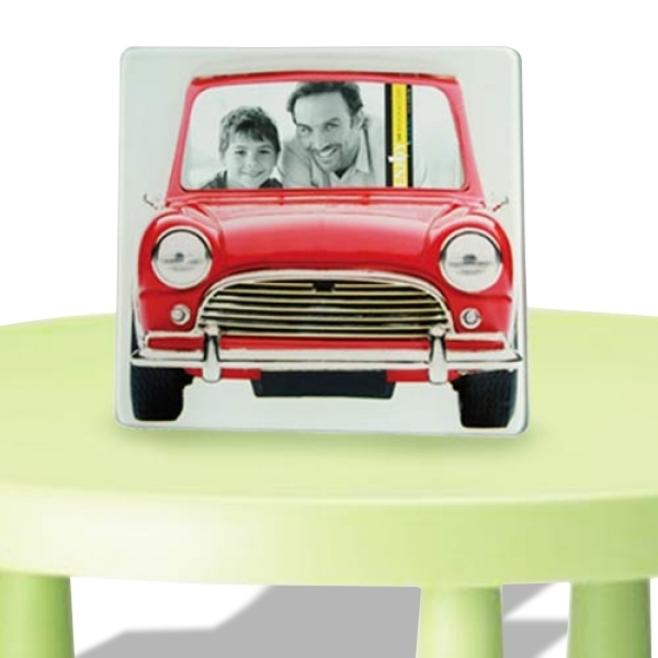 Ce cadre-photo apportera une touche décorative insolite chez vous. Il est fabriqué en verre et affiche une voiture vintage de couleur rouge.* Matière : verre * Dimensions : 6 x 10 cm Fonctions : cadre photo Contenu : 1 cadre photo voiture vintage colorée