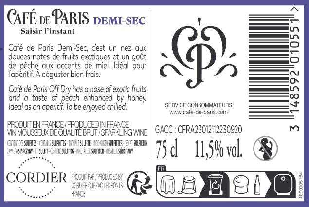 Libellé Café de Paris - Demi-sec Blanc de Blancs - 75 cl