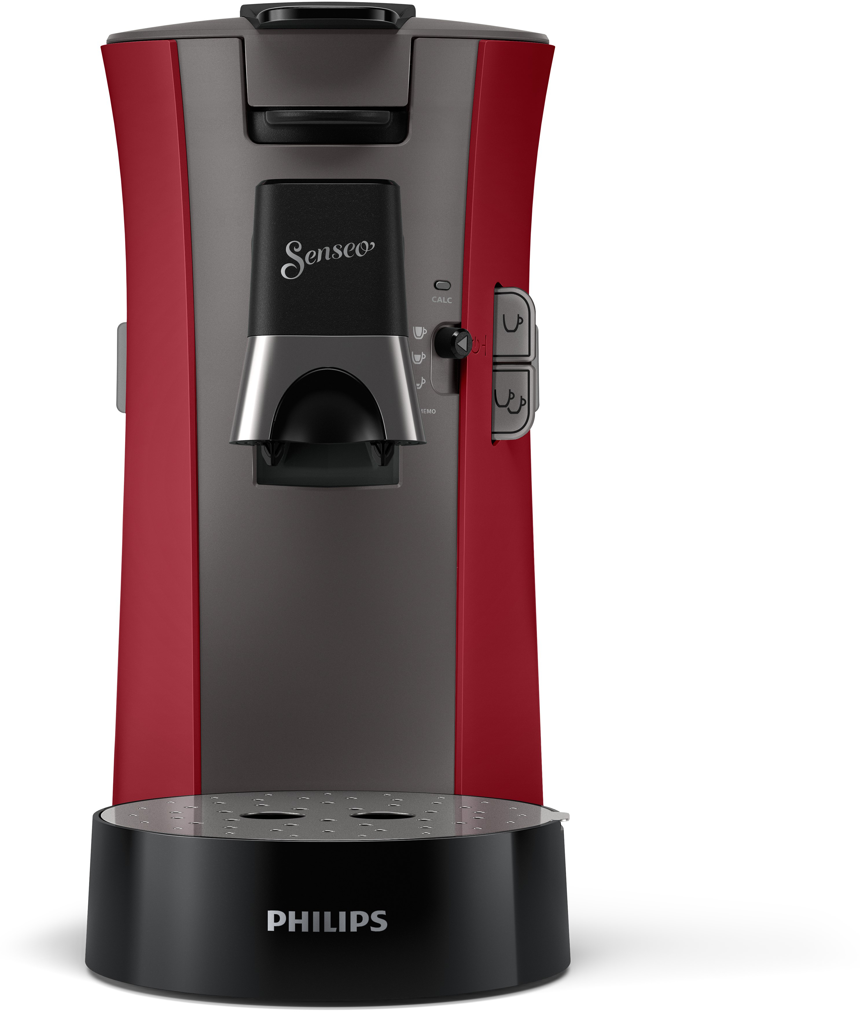 csa240.91 - cafetière à dosettes 1bar 1450w rouge - Cafetière à dosettes SENSEO Select CSA240.91 Philips. Sélectionnez le café de votre choix, en toute simplicité, grâce à la glissière intuitive Intensity Plus et obtenez un délicieux café à la simple pression d'un bouton !. Fonction Mémo pour être au plus près de vos goûts. Simple d'utilisation et rapide : 1 tasse en 30 secondes ou 2 tasses en moins d'une minute !. Fonction démarrage instantané : prépare votre café dès que la machine a fini de chauffer. La sélection raffinée de café SENSEO® et le système de préparation unique SENSEO® vous permettent d'obtenir une tasse de café parfaite et une couche de crème savoureuse, preuve d'un goût et d'une qualité d'exception (Crema Plus). Un large choix de cafés et de boissons gourmandes : SENSEO® propose un large choix de cafés et de boissons gourmandes, dont les caractéristiques distinctives satisferont tous les goûts. Technologie Booster d'arômes : la technologie SENSEO® Booster d'arômes tire le meilleur de vos dosettes. Le goût est plus riche et intense, grâce aux processus suivants : la distribution plus fine de l'eau (de 5 à 45 buses d'arôme) garantit une répartition optimale de l'eau chaude sur l'ensemble de votre dosette SENSEO® afin qu'elle entre en contact avec la totalité des 50 grains de café à la fois. Chaque particule de café moulu peut ainsi libérer tous ses arômes et parfums, pour un goût plus riche et intense. Intensity Plus : faites votre choix parmi 3 profils d'arômes équilibrés (Long, Intense, Expresso). Bec verseur ajustable. Arrêt automatique après 30 minutes pour réduire votre consommation d'énergie. Plastique recyclé utilisé : 21 %* Bac d'égouttement amovible. Machine fabriquée à partir de 21 % de plastiques recyclés. Rappel de détartrage. Réservoir 0,9 L amovible. - Type de produit : Cafétière à dosettes.