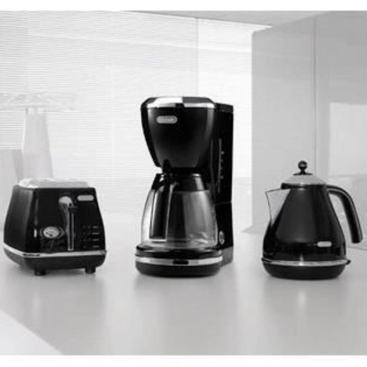 Libellé Cafetière à filtre Delonghi Icona, Noir/Chrome, Carafe en verre, Eco function, 1,25L pour 10 Tasses, 1000W