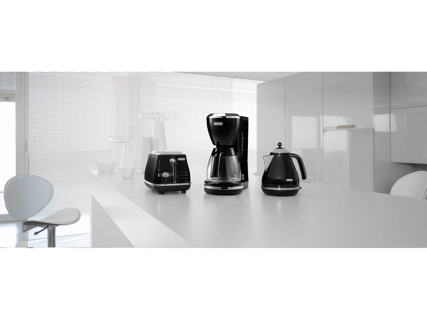 Cafetière à filtre de la collection Icona de la marque De'Longhi, qui associe la passion italienne en matière de style et de design élégant mais aussi une grande attention accordée à la couleur et à l'innovation technologique.