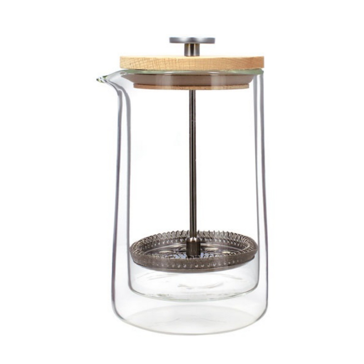 Cafetière à piston 0.5 L. Octave. Transformez chaque moment café en un véritable rituel de plaisir et de raffinement ! Une alliance parfaite de design et de performance pour préparer votre café. Offrez-vous une expérience incomparable : il vous suffit d'ajouter votre café moulu préféré, de verser de l'eau bouillante dans cette cafetière résistante à la chaleur, puis d'attendre 4 minutes, pressez et savourez chaque gorgée de votre café d'exception ! Grâce à sa conception en verre borosilicate à double paroi, votre café reste chaud plus longtemps tandis que l'extérieur de la cafetière reste froid au toucher, évitant ainsi toute brûlure. Corps en verre borosilicate double paroi, résistant à la chaleur. Couvercle en bois. Filtre en acier inox 304, résistant et dense : permet de presser le café en laissant les arômes passer mais pas la mouture. Dimensions 10 x 10 x 19 cm .Nettoyage facile : passe au lave-vaisselle (sauf couvercle en bois).