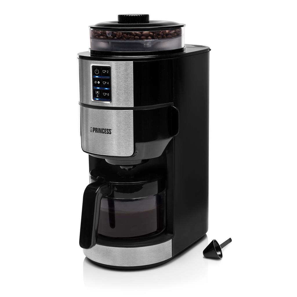 Cafetière Princess 249408 Grind & Brew Compact Deluxe – Avec moulin à café intégré – 6 tasses Boire du café fraîchement moulu est un vrai plaisir, mais pour vous l’offrir vous êtes probablement obligé de sortir de chez vous. La cafetière Princess 249408 Grind & Brew Compact Deluxe comporte un moulin à café intégré qui vous permet de préparer un exceptionnel café fraîchement moulu. Cette cafetière de luxe vous fait vivre une expérience de dégustation de café incomparable sans quitter votre cuisine. Vous pouvez régler la mouture et l'intensité du café. Système de broyage conique de haute qualité L’utilisation de grains de café fraîchement moulus a une influence très importante sur la saveur et la puissance de votre café. La mouture a elle une incidence sur le résultat final. Plus la texture est fine, plus il faut de temps à l’eau pour passer, et plus les arômes se développent. Votre café vous semble souvent amer ? Choisissez une mouture plus grossière et vous remarquerez la différence. La cafetière Princess Grind & Brew propose de nombreux réglages et vous trouverez certainement celui qui est idéal pour vous. Réservoir à grains de grande capacité Le réservoir peut contenir une grande quantité de grains de café, suffisamment pour remplir une cafetière de grande contenance. Transparent, il vous permet de voir facilement à quel moment ajouter des grains. Vous préférez utiliser du café moulu, par exemple un décaféiné ? C’est aussi possible. Vous pouvez désactiver manuellement le moulin à café et verser le café moulu dans le filtre à café. Affichage numérique facile d’emploi L’affichage numérique permet de sélectionner facilement l’intensité du café et le nombre de tasses et d’allumer ou d’éteindre l’appareil. Sans compter que vous pouvez activer la fonction minuteur et vous laisser réveiller le matin par le parfum du café chaud. La fonction de maintien au chaud garde votre café à la bonne température pendant environ 40 minutes. Faites-vous plaisir et offrez-vous une tasse de café le matin au réveil ou pour vous détendre après le dîner. Contenu : Cafetière Princess Grind & Brew Compact Deluxe, cuiller à mesurer, guide d’utilisation Les bonnes raisons de choisir la Cafetière Princess Grind & Brew Compact Deluxe : Préparez-vous un café exceptionnel à la maison avec des grains de café moulus automatiquement Peut préparer 6 tasses de café, grâce à son grand réservoir à grains Affichage numérique permettant de sélectionner facilement la quantité et l’intensité idéales de café Moulin à café avec neuf réglages, convient aussi pour le café moulu