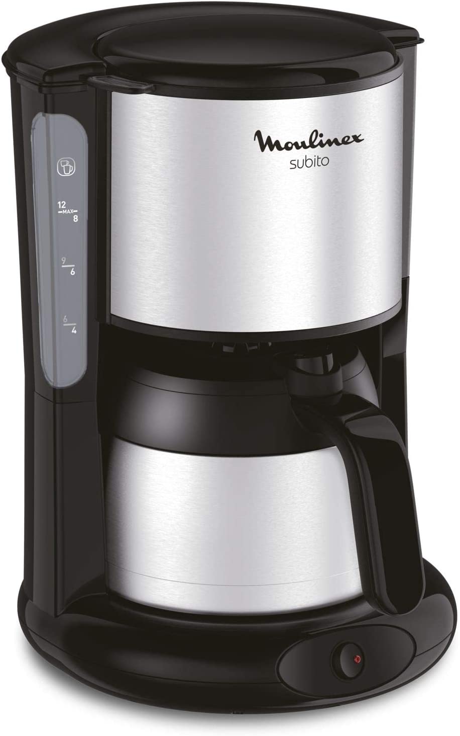 Élégante avec sa finition noire brillante et son inox brossé, cette cafetière filtre trouvera sa place dans votre cuisine. Simple et efficace, la cafetière filtre Subito offre une multitude de fonctions pratiques : - Capacité de la verseuse Isotherme de 8-12 tasses : 0,9 l de café maintenu au chaud pendant 4 heures grâce à son corps en inox - Porte-filtre pivotant et amovible : facile à remplir, facile à nettoyer - Arrêt automatique : votre cafetière s'éteint automatiquement à la fin du cycle - Système anti-goutte : pour servir le café même lorsque la cafetière est en fonctionnement - Marche/arrêt avec témoin lumineux : possibilité d'allumer/éteindre l'appareil à tout moment - Niveaux d'eau visibles à l'avant : facile de remplir et doser l'eau - Facilité d'accès au réservoir d'eau