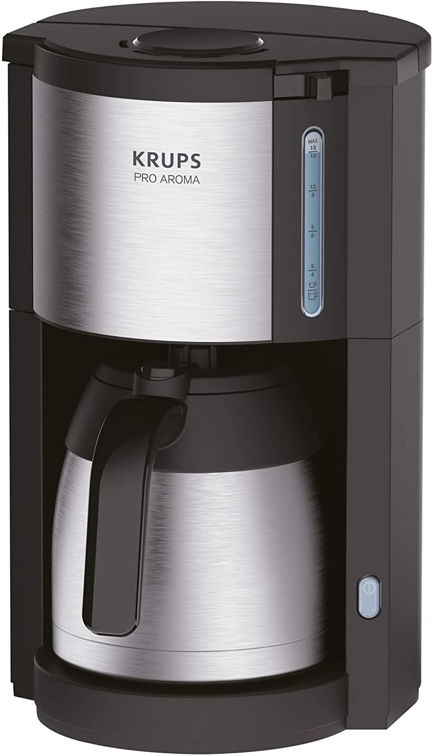 Cafetière isotherme de haute qualité pour une dégustation longue durée et un café chaud jusqu'à 4 heures. Issu de la série ProAroma réussie de Krups. Avec indicateur de niveau d'eau extérieur et filtre pivotant pour un fonctionnement simple et rapide.