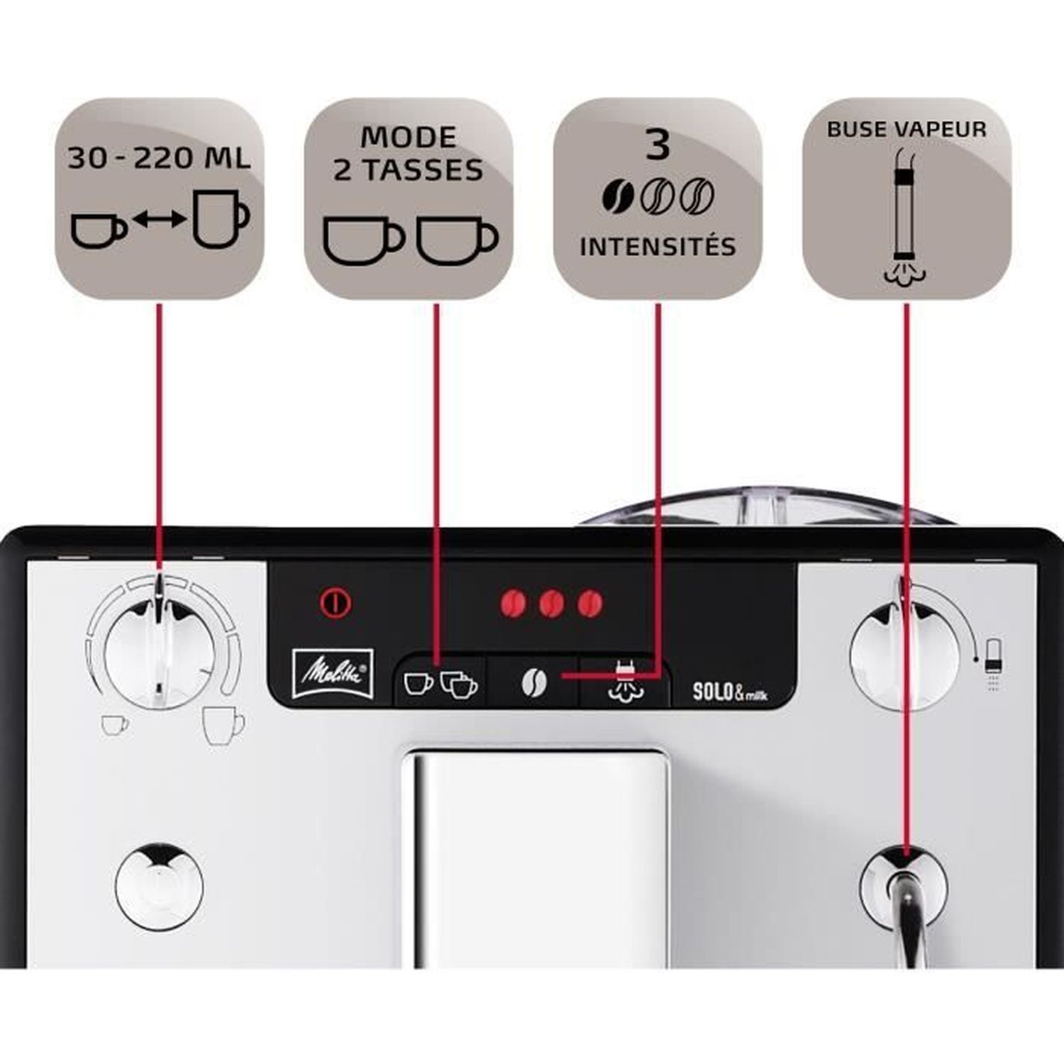 | Libellé | Cafétière électrique Melitta Caffeo Solo & Milk E 953-102 1400 W |
