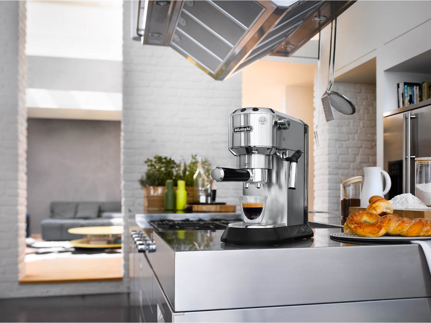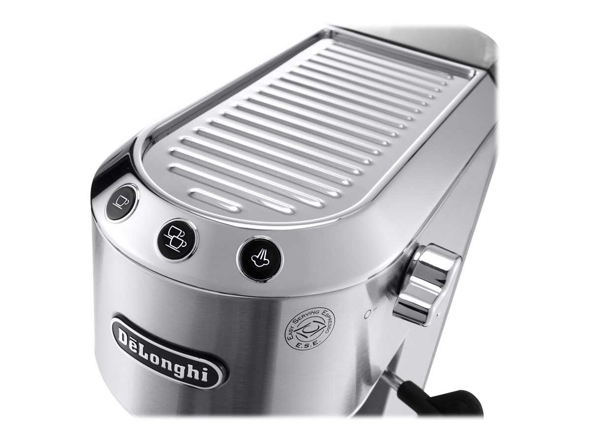 DEDICA, La plus citadine des espressos! Une dédicace à l'art de vivre à l'Italienne. L'espresso pompe ultra compact de De'Longhi, N°1 des ventes depuis 2014, Dedica est la référence pour les passionnés de café. Son design unique et professionnel a été repensé, avec de coloris mates et de fonctionnalités toujours plus poussées sans compromis sur la qualité en tasse. Ultra compact avec seulement 14.9cm de large pour s'adapter à tous les espaces, Dedica est un concentré de technologies pour obtenir un espresso parfait en toute simplicité. Thermobloc, arrêt automatique de l'écoulement pour une ou deux tasses, enregistrement de la longueur de votre espresso, et un repose-tasse double position pour réaliser un espresso lungo ou un double espresso directement dans un mug font de Dedica la référence sur le marché.