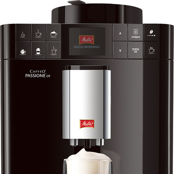 La CAFFEO® Passione® One Touch possède un design compact et moderne - Son élégance simple et ses angles arrondis caractérisent cette machine à expresso automatique - Elle permet d'accéder à des spécialités de café en accès rapide sur le panneau de contrôle et offre un choix pratique de 6 spécialités de café supplémentaires en utilisant le menu de l‘écran TFT- Encore plus pratique : votre spécialité de café peut être préparée sur simple pression d‘un bouton en utilisant l‘intensité et la quantité de lait que vous avez préprogrammées - Le système innovant : Best Aroma System, avec ses trois systèmes individuels spéciaux, permet de transporter la quantité de grains de café sélectionnée fraichement moulue vers la chambre d’extraction, pour garantir un développement optimal de la saveur et ainsi vous procurer de magnifiques sensations gustatives - 5 intensités de café - 5 réglages possibles du moulin conique en acier - Réservoir d'eau amovible avec détection automatique du niveau d'eau - Comprend un pack de bienvenue incluant une pastille de nettoyage, un nettoyant pour système de préparation du lait, un détartrant liquide et une cartouche filtrante - 1.450 watts Procédé de préparation authentique qui permet de préparez votre café selon les standards, c‘est-à-dire dans le respect de l‘ordre des ingrédients - Utilisation intuitive grâce à un écran couleur TFT - Un confort d‘utilisation maximal : l‘écran couleur TFT haute résolution permet une utilisation intuitive et une navigation aisée dans le menu, étape par étape - Bec verseur tout-en-un avec éclairage LED réglable en hauteur jusqu‘à 135 mm, ce qui est idéal pour les grands verres à latte macchiato - Grâce aux buses pour le café, le lait et l‘eau chaude, vous pouvez préparer votre boisson favorite sans bouger votre tasse - Facile à nettoyer et à entretenir : chambre d‘extraction amovible pratique et simple à retirer et à nettoyer - Cela permet de nettoyer l‘intérieur de la machine - Système de préparation du lait amovible avec un réservoir à lait externe résistant au lave-vaisselle et adapté à tout type de réfrigérateur - 10 variétés de café en appuyant sur l‘une des touches de sélection directe, préparez l‘une des 4 recettes classiques : expresso, café long, cappuccino et latte macchiato - La fonction „recettes“ vous permet de préparer 6 autres spécialités de café : ristretto, lungo, americano, expresso macchiato, café latte et café au lait.