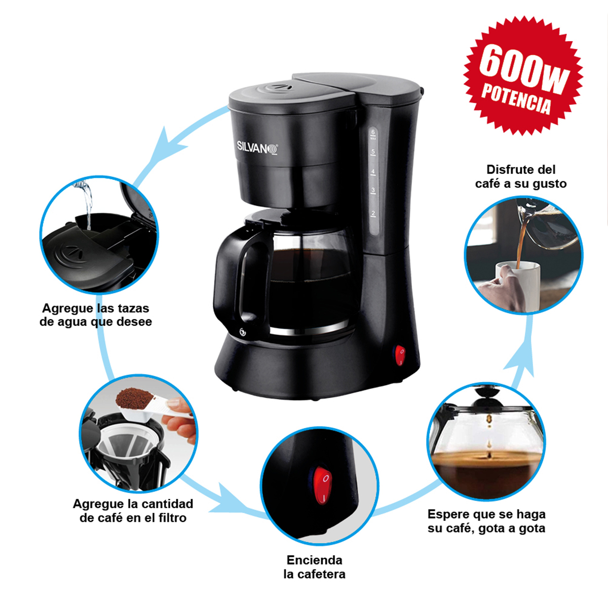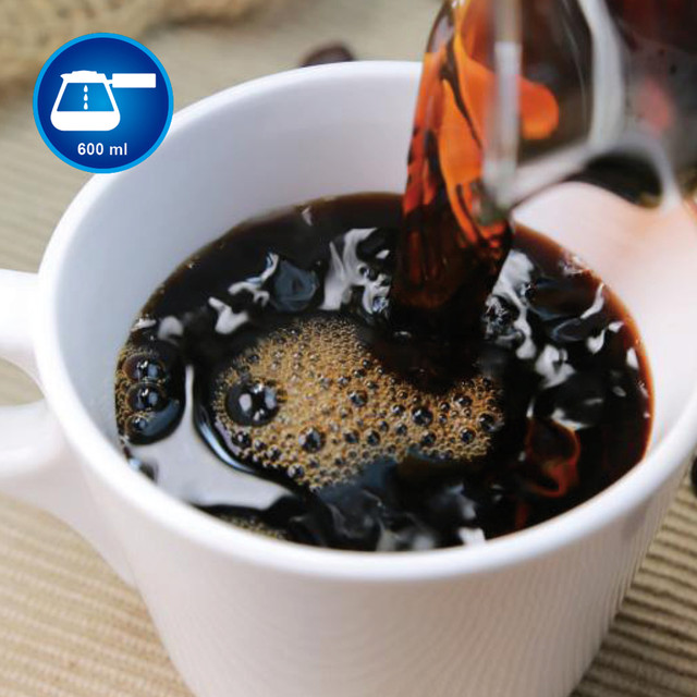 Notre cafetière filtre prépare jusqu'à 6 tasses de café grâce à son grand réservoir de 600 ml, elle dispose d'un système anti-goutte qui arrête la préparation du café lorsqu'elle détecte que la verseuse est déplacée, retirez-la à tout moment de préparation et n'attendez pas qu'elle soit terminée pour déguster votre café.