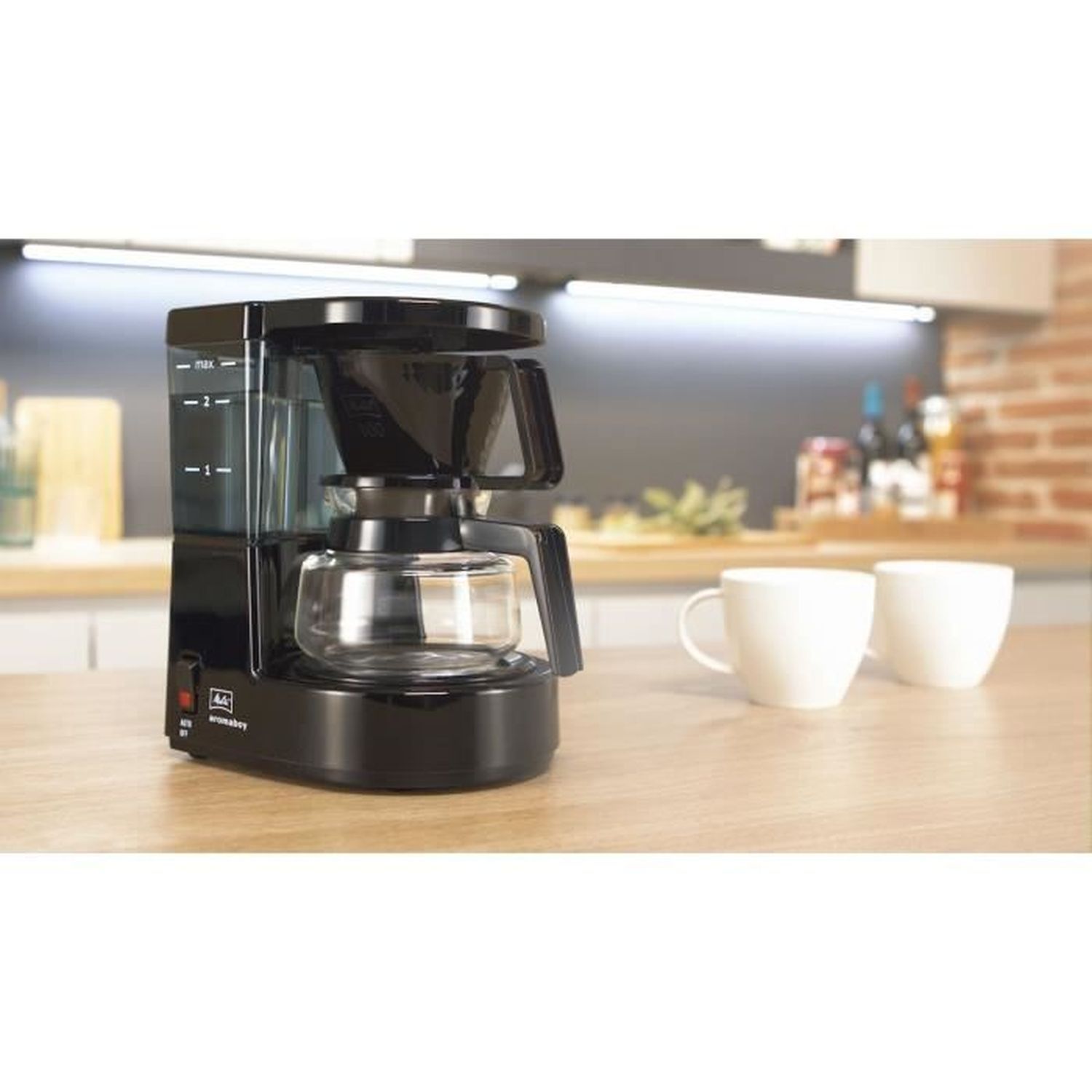 La cafetiere a filtre MELITTA Aromaboy 1015-02 Noir est équipée d'une verseuse en verre avec support pour filtre d'une capacité de 0,25 l. Elle dispose d'un réservoir a eau transparent avec indicateur externe du niveau d'eau, d'un interrupteur ON/OFF lumineux et d'un arret automatique. Elle est livrée avec des filtres a café Melitta® de taille 100. Sa puissance électrique est de 500W.