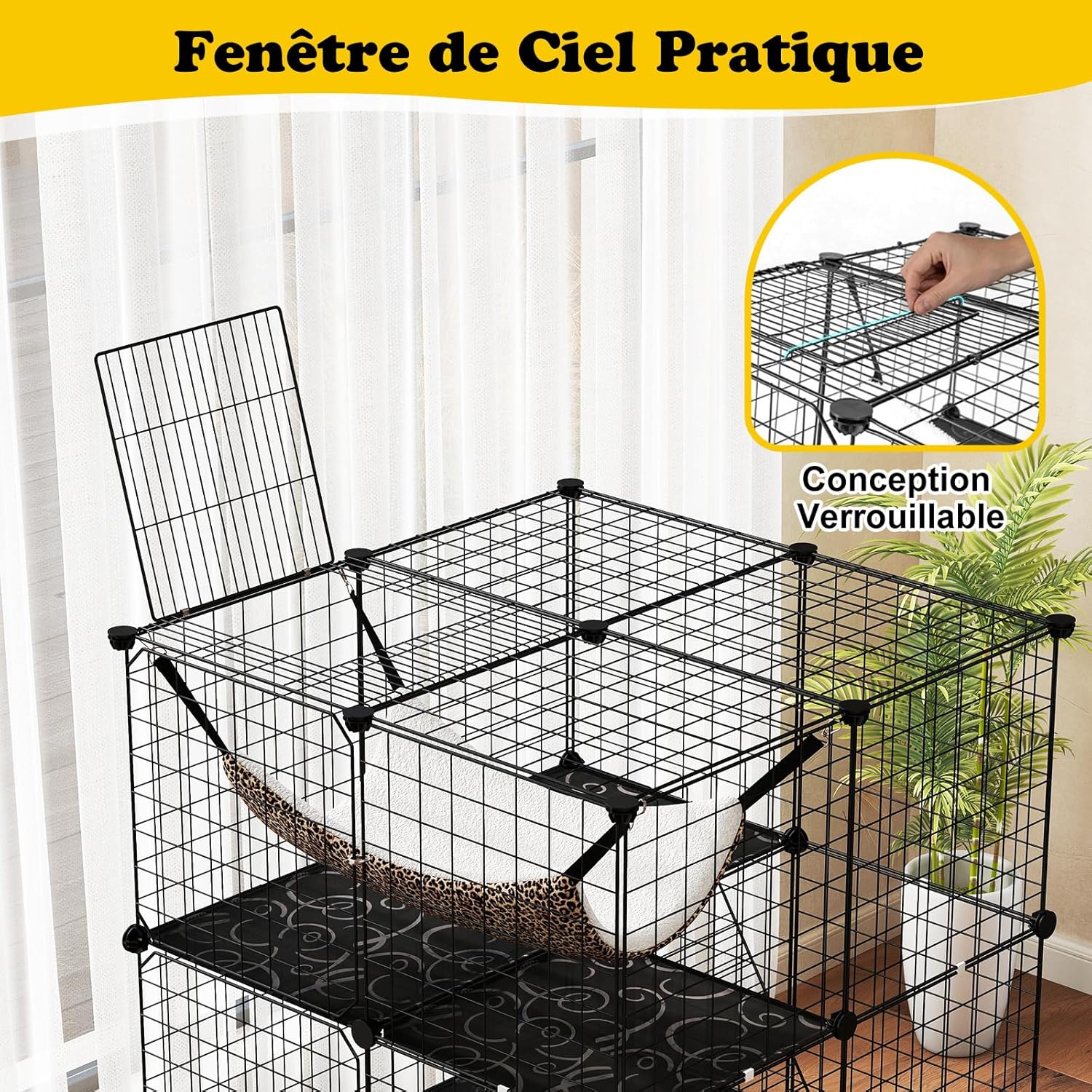 - Montage Facile : Cette cage multifonctionnelle pour chats est conçue avec des panneaux à emboîtement et livrée avec une gamme complète d'accessoires ainsi qu'un manuel d'installation clair. Il suffit de suivre les étapes de montage pour l’assembler rapidement, ce qui la rend très facile à monter et à démonter.