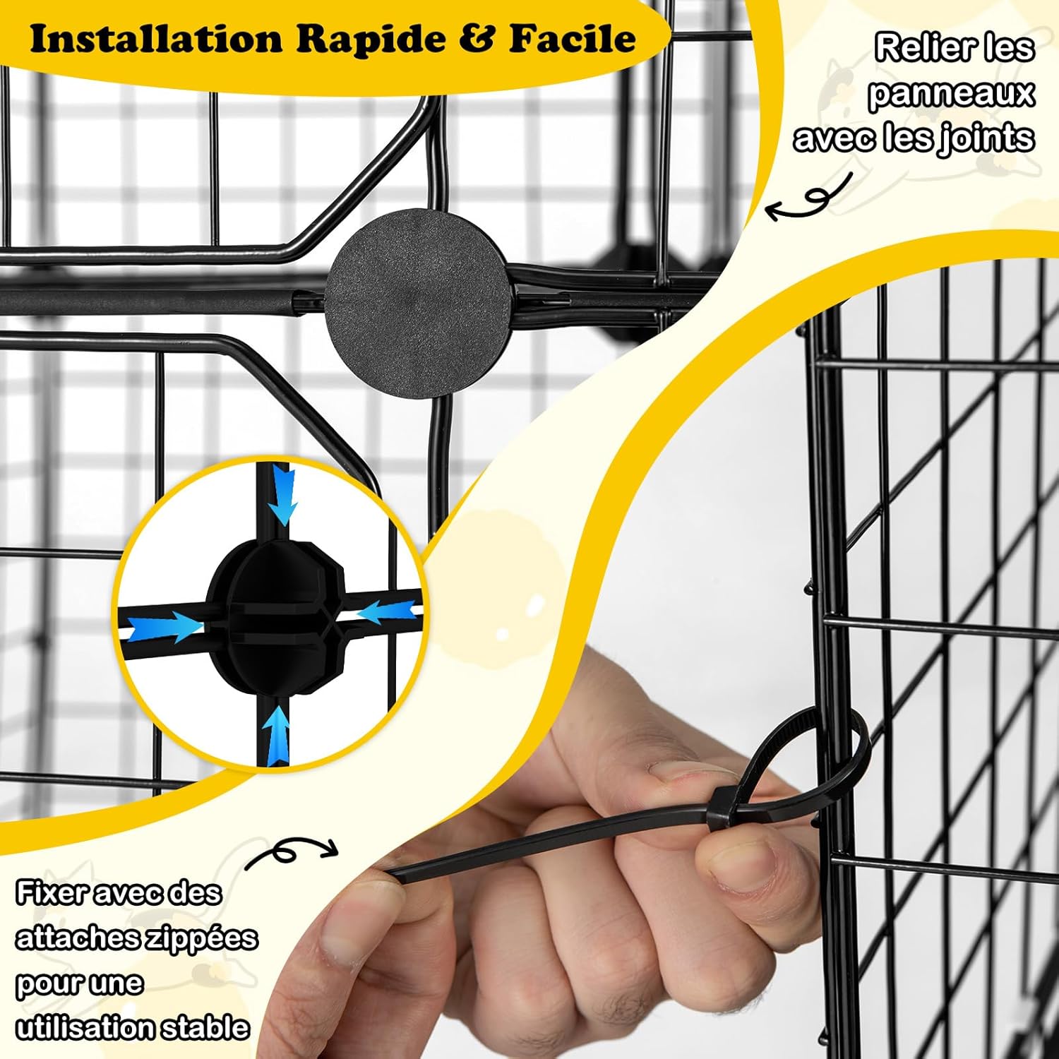 - Construction Solide : Cette grande cage pour animaux est fabriquée avec une structure robuste en métal et des panneaux en PP, résistants aux impacts et offrant une longue durée de vie. La large plateforme formée par chaque panneau peut supporter jusqu'à 5 kg.