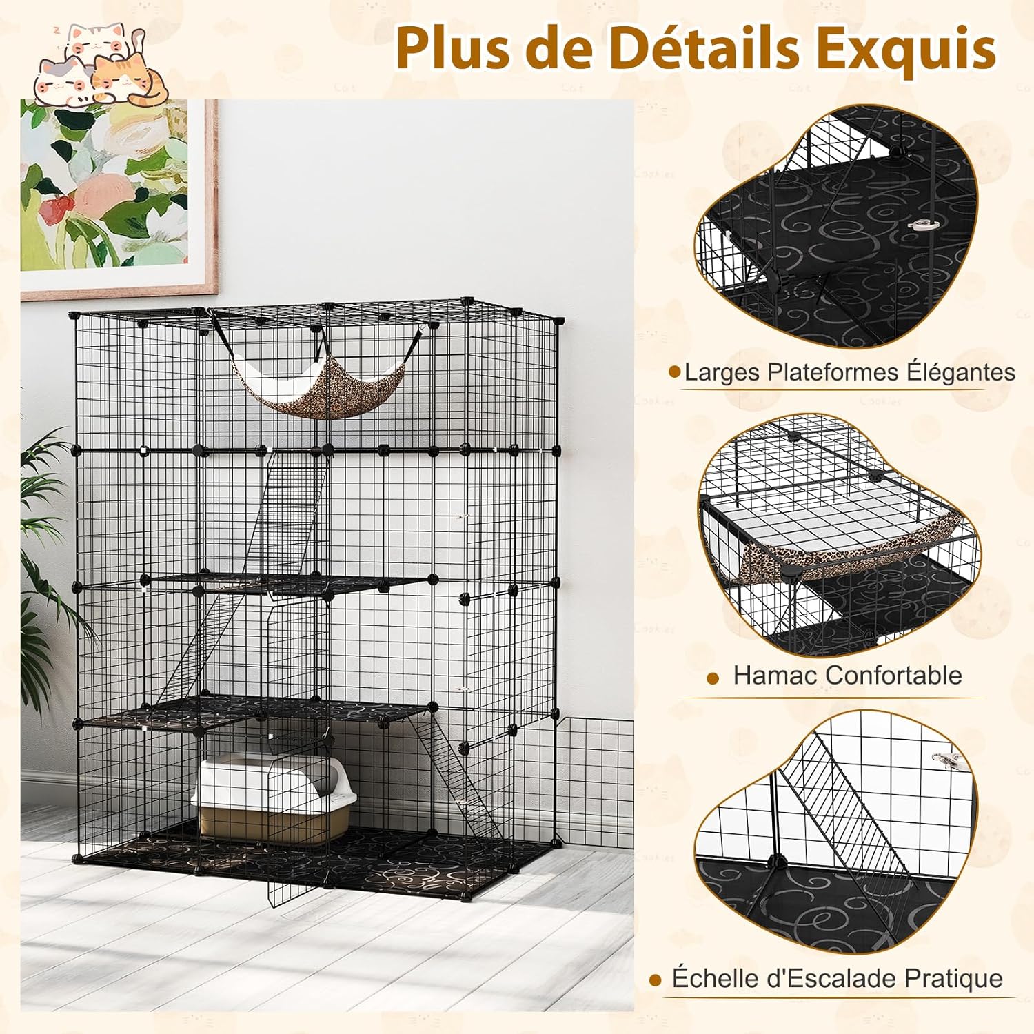 | Libellé | Cage pour chat chien,4 niveaux avec hamac, échelle,fenêtre de ciel, grand enclos pour chats en métal,noir |