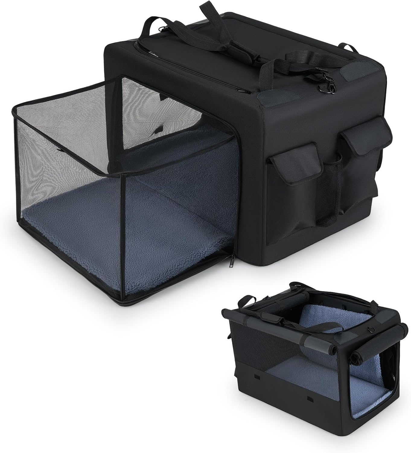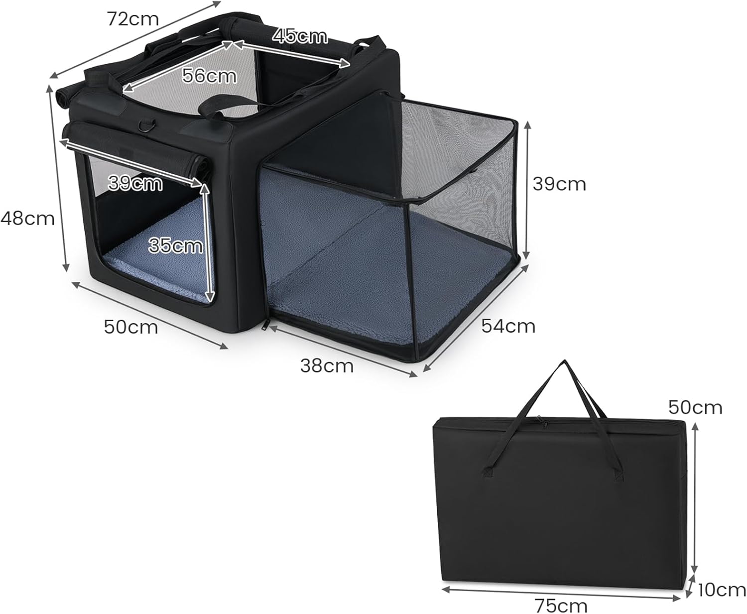 Cage transports chiens chats extensible 5 fenêtres aérées 2 ouvertures, coussin et bandoulière 72x50x48cm