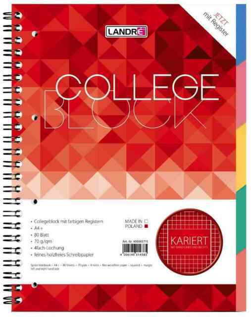 LANDRÉ - Cahier à spirale avec intercalaires "Collège" - A4 - 5x5 + M  . Cahier avec intercalaires pour l'organisation parfaite des projets, des matières scolaires, des devoirs etc..