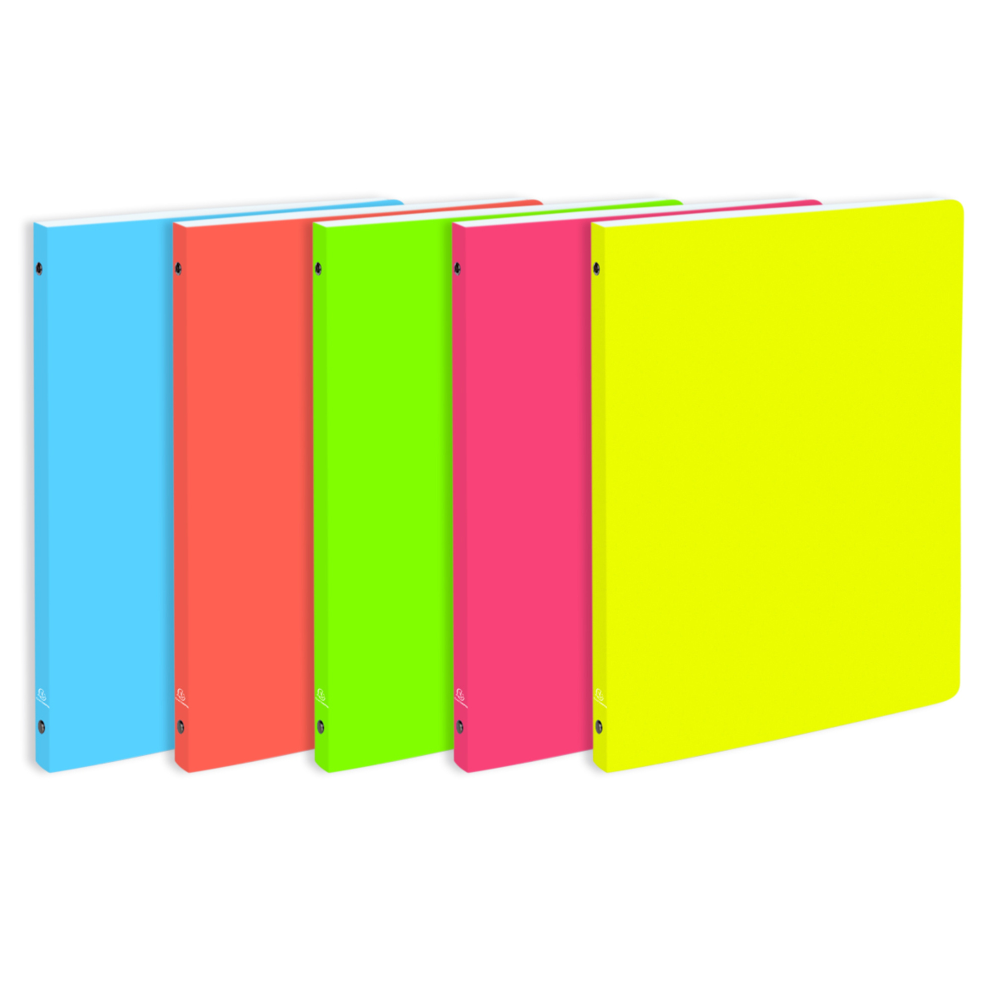 "Cahier Classeur NEON Exacompta 4 anneaux dos de 20mm, durable *Couleurs fluo tendance, vives et pleines de Pep's *En polypropylène opaque 5/10ème *Format 21x29,7 pour ranger facilement ses feuilles * 5 couleurs"