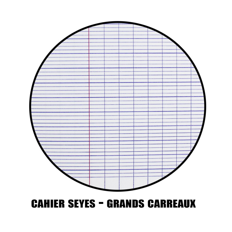 • Réglure : Grands carreaux Seyès tricolore (rouge, violet, bleu)