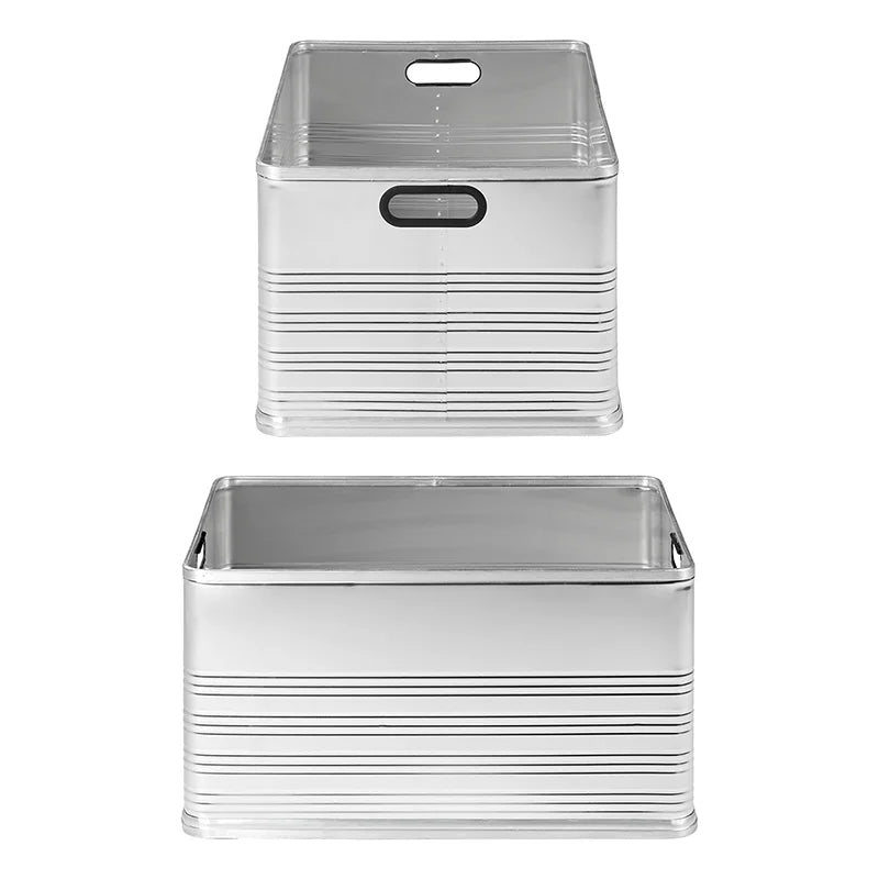 - Empilable- Les poignées latérales de sécurité garantissent un port ergonomique et une capacité de charge élevée- Capacité en litres :120- Épaisseur de paroi de 1 mm- Matériau : aluminium de haute qualité- Meilleure résistance à la déformation grâce aux rainures renforcéesTermes de rechercheCaisse de transport en aluminium, Boîte de rangement, Boîtes de rangement, Caisse de transport