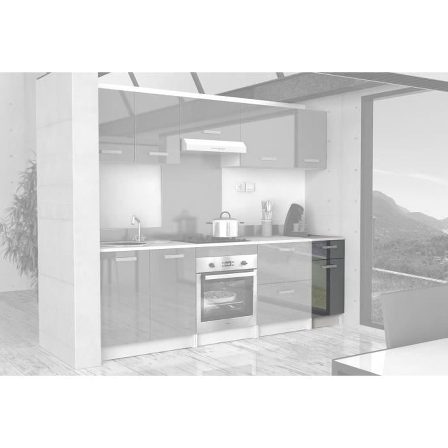 Ce meuble bas de cuisine START est fabriqué en France avec des panneaux de particules gris haute brillance. Son style contemporain est mis en valeur par ses poignées et quincaillerie ISO 9001:2000 fournies. Le plan de travail est inclus. Dimensions : L 40 X P 60 X H 85 cm.