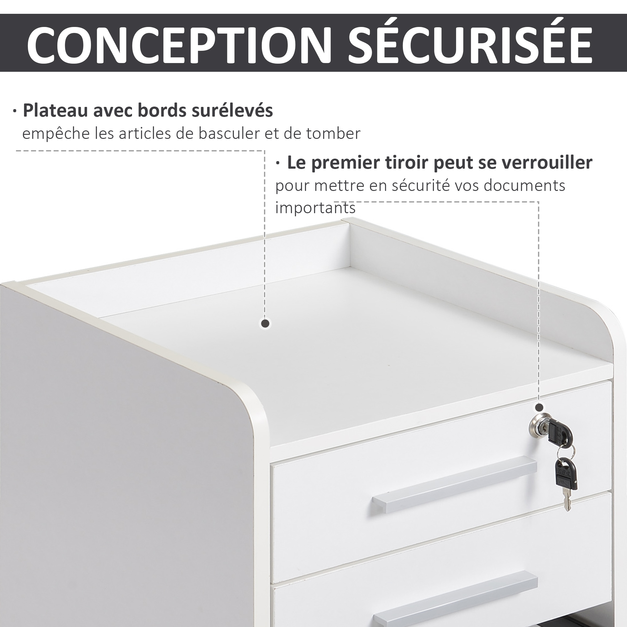 - Petit tiroir verrouillable avec 2 clés pour mieux protéger vos effets personnels